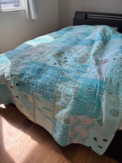 繋ぎ合わせたパッチワークキルトはとても華やか。