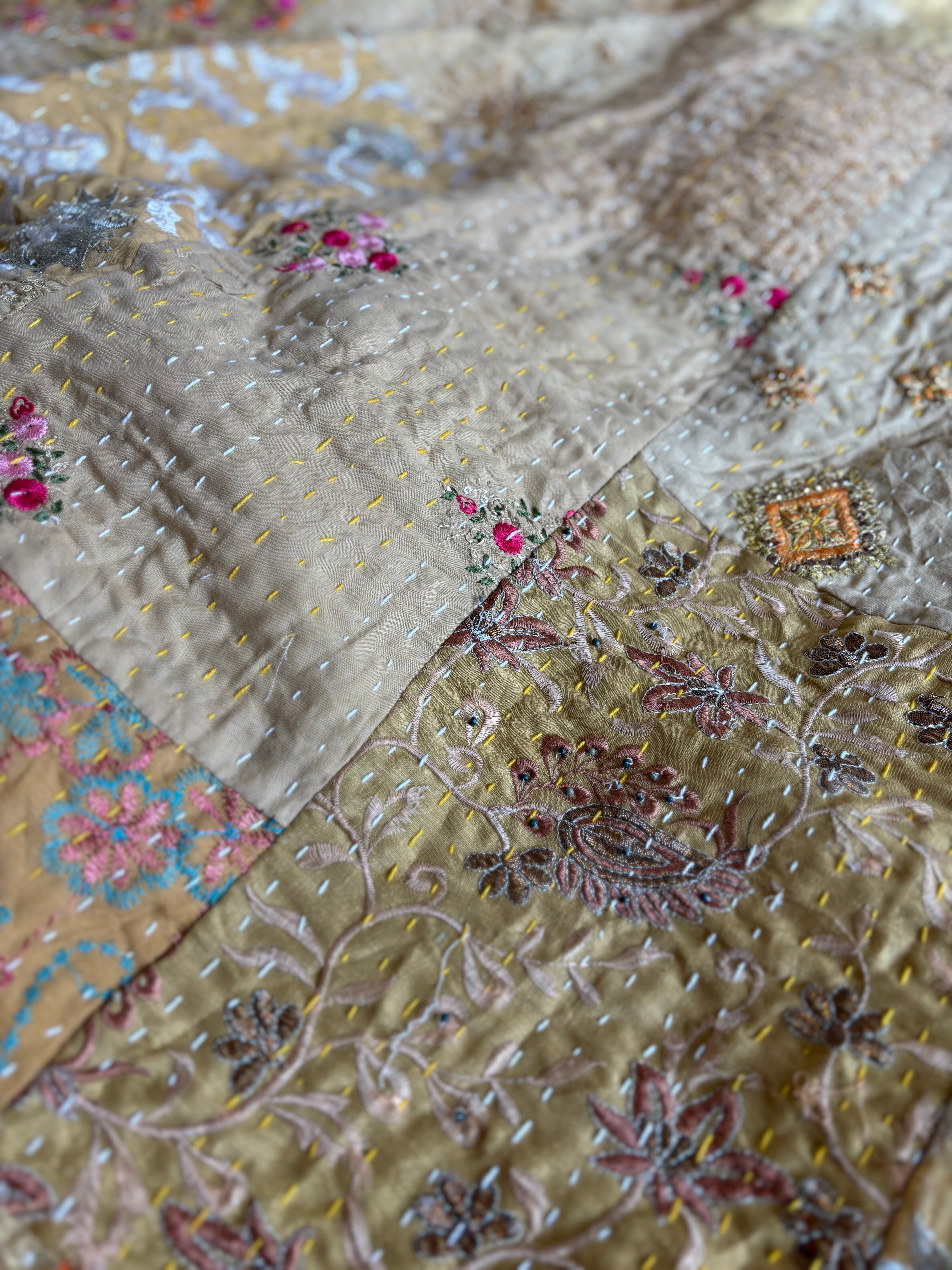 繋ぎ合わせたパッチワークキルトはとても華やか。