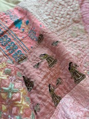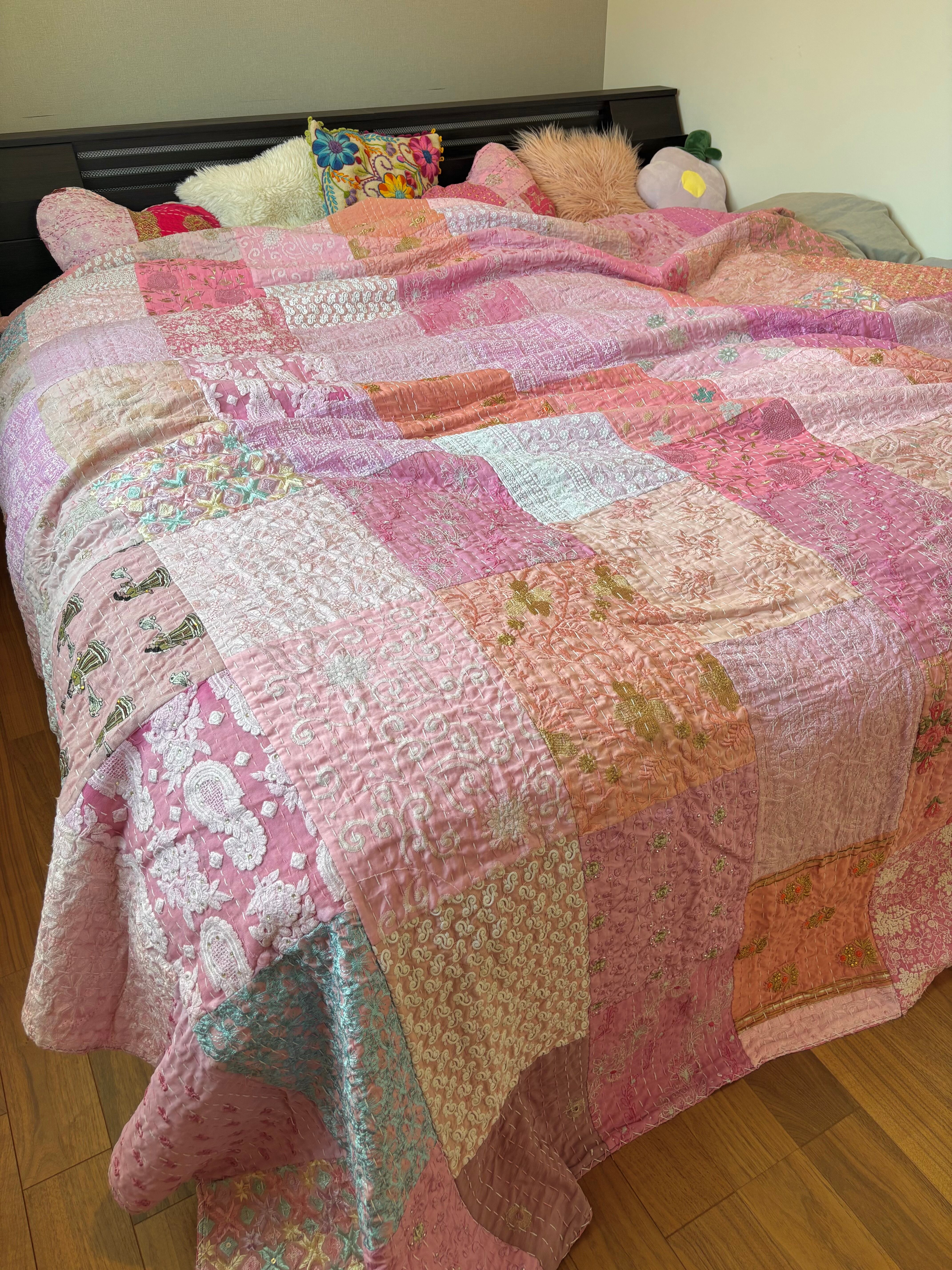 繋ぎ合わせたパッチワークキルトはとても華やか。