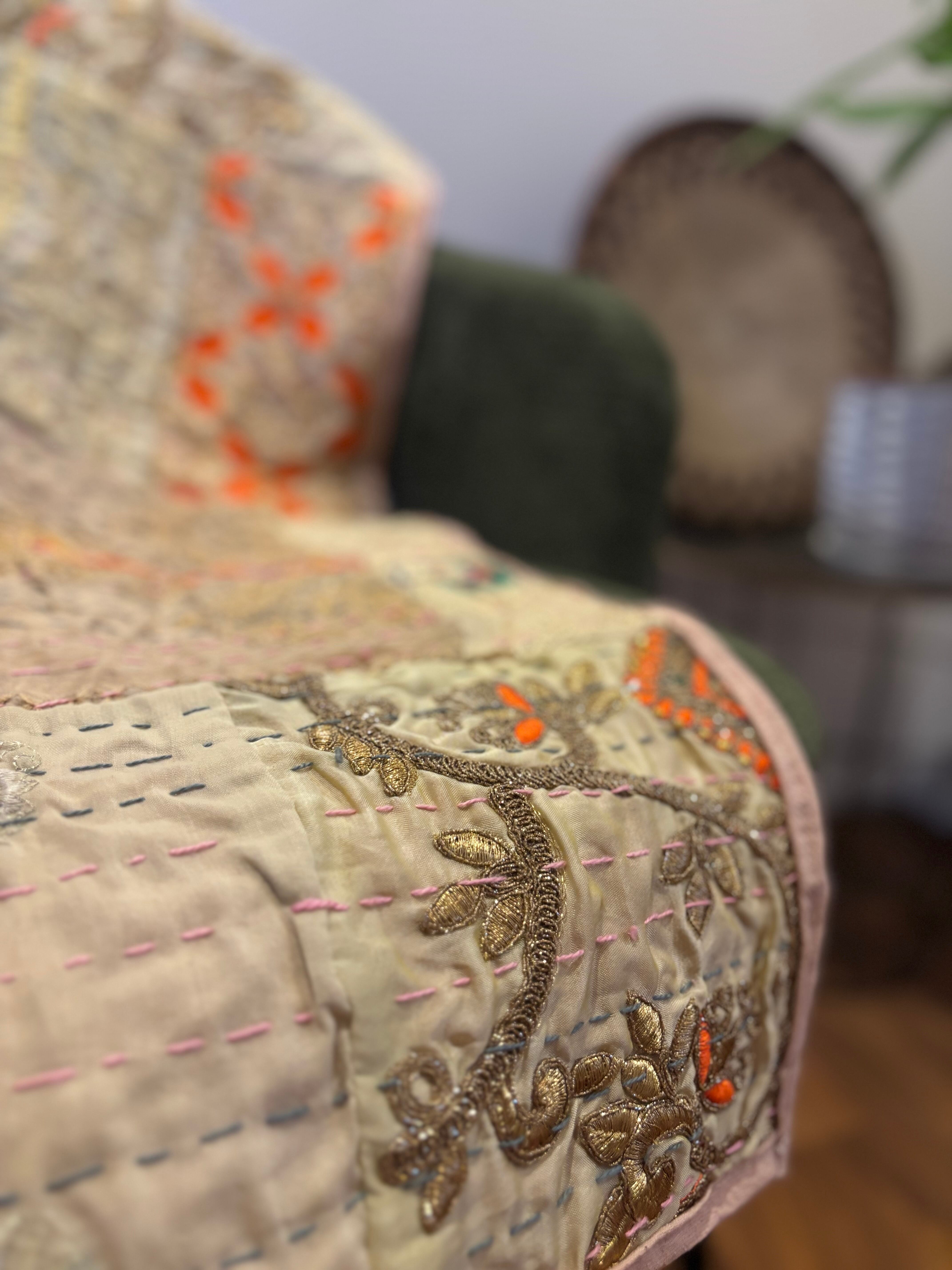 ※本品は、一部にビーズ、スパンコール、ミラーなど装飾を施したインドの古布を使用しており、多少のほつれ、ビーズ取れ、問題ない程度のシミ等が生じる場合がございます。 検品時に確認し、なるべく見落とさずに写真でお伝えできるよう努力しております。