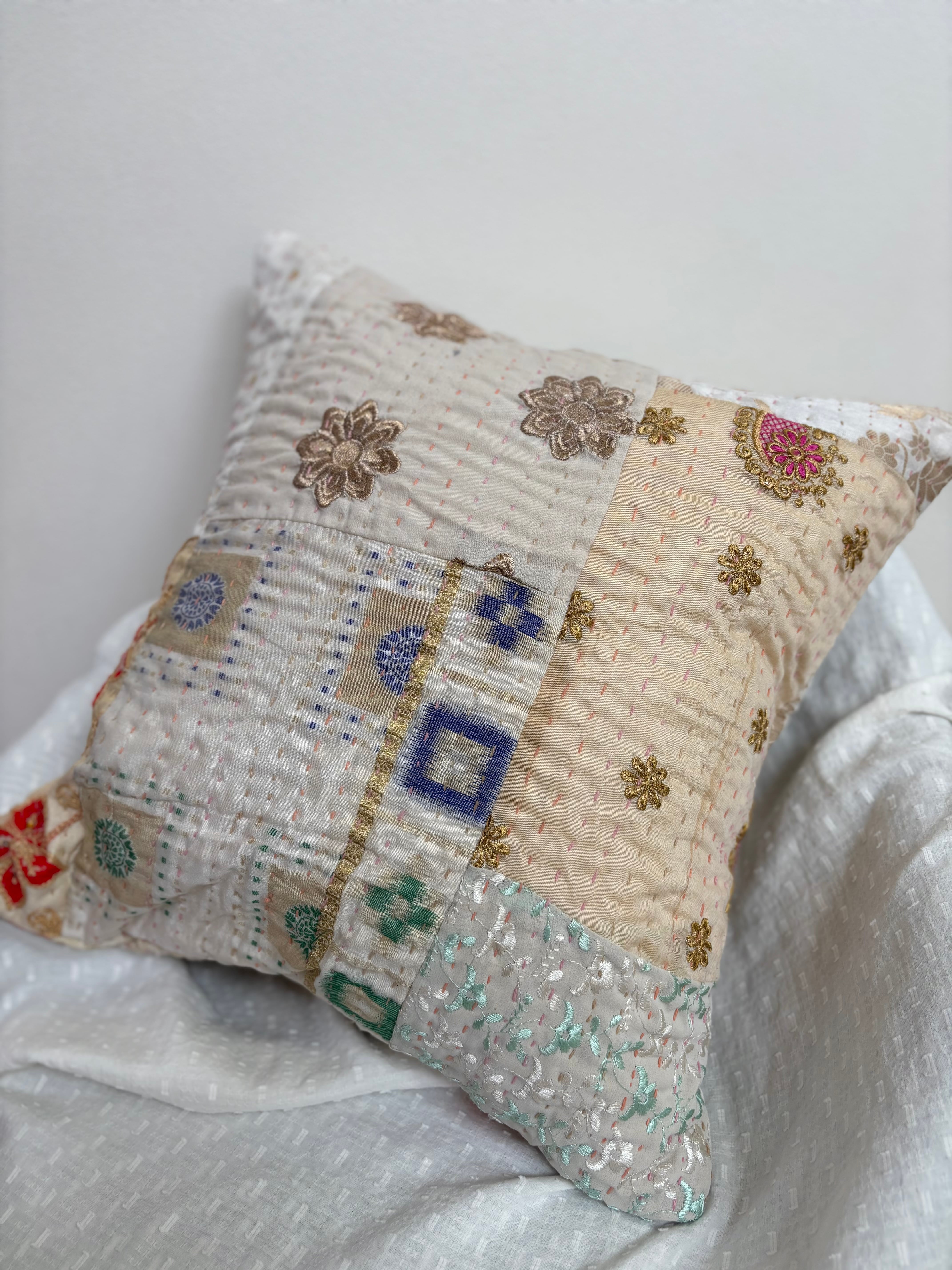 繋ぎ合わせたパッチワークキルトはとても華やか。