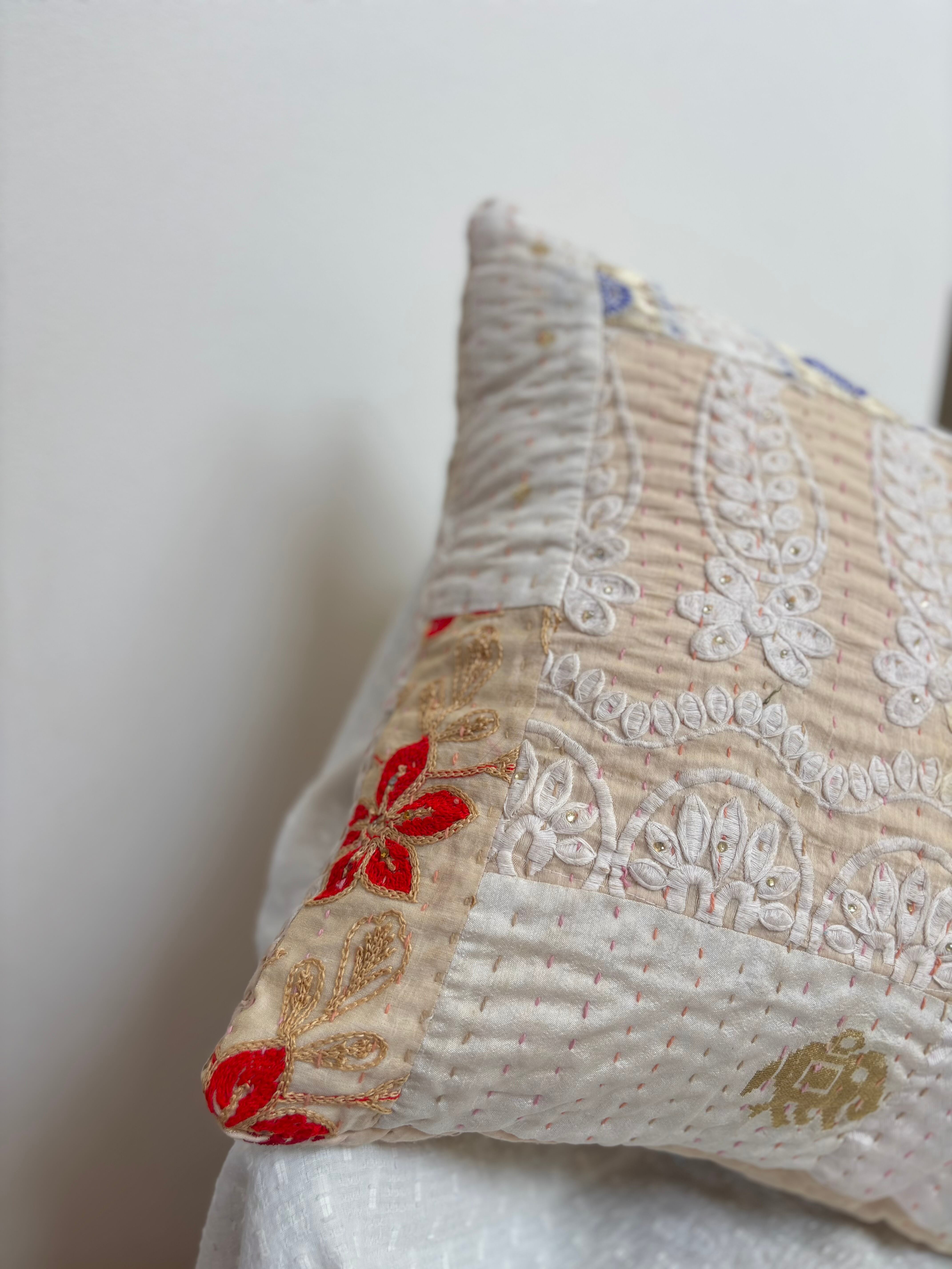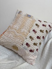 繋ぎ合わせたパッチワークキルトはとても華やか。