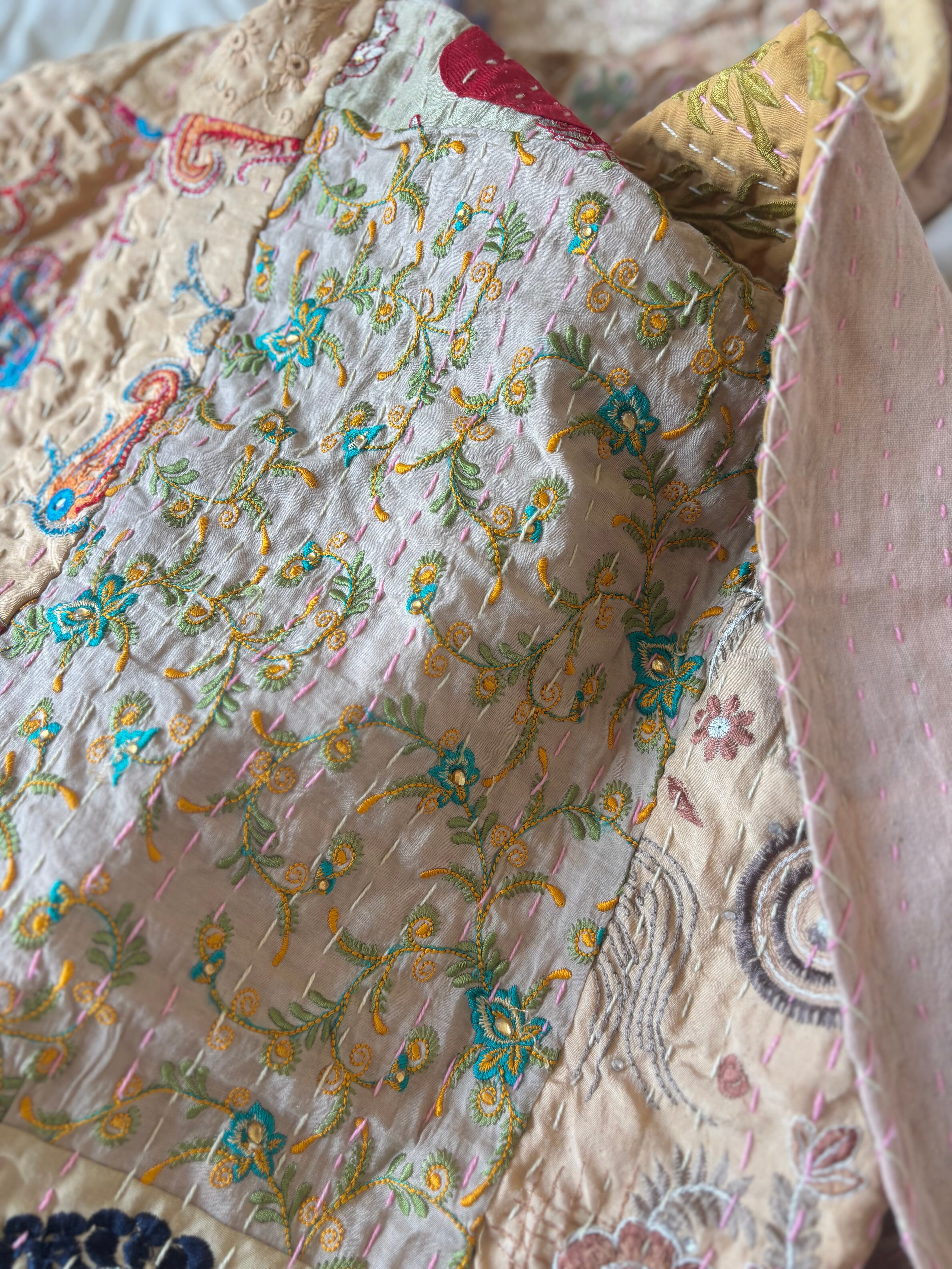 ※本品は、一部にビーズ、スパンコール、ミラーなど装飾を施したインドの古布を使用しており、多少のほつれ、ビーズ取れ、問題ない程度のシミ等が生じる場合がございます。 検品時に確認し、なるべく見落とさずに写真でお伝えできるよう努力しております。
