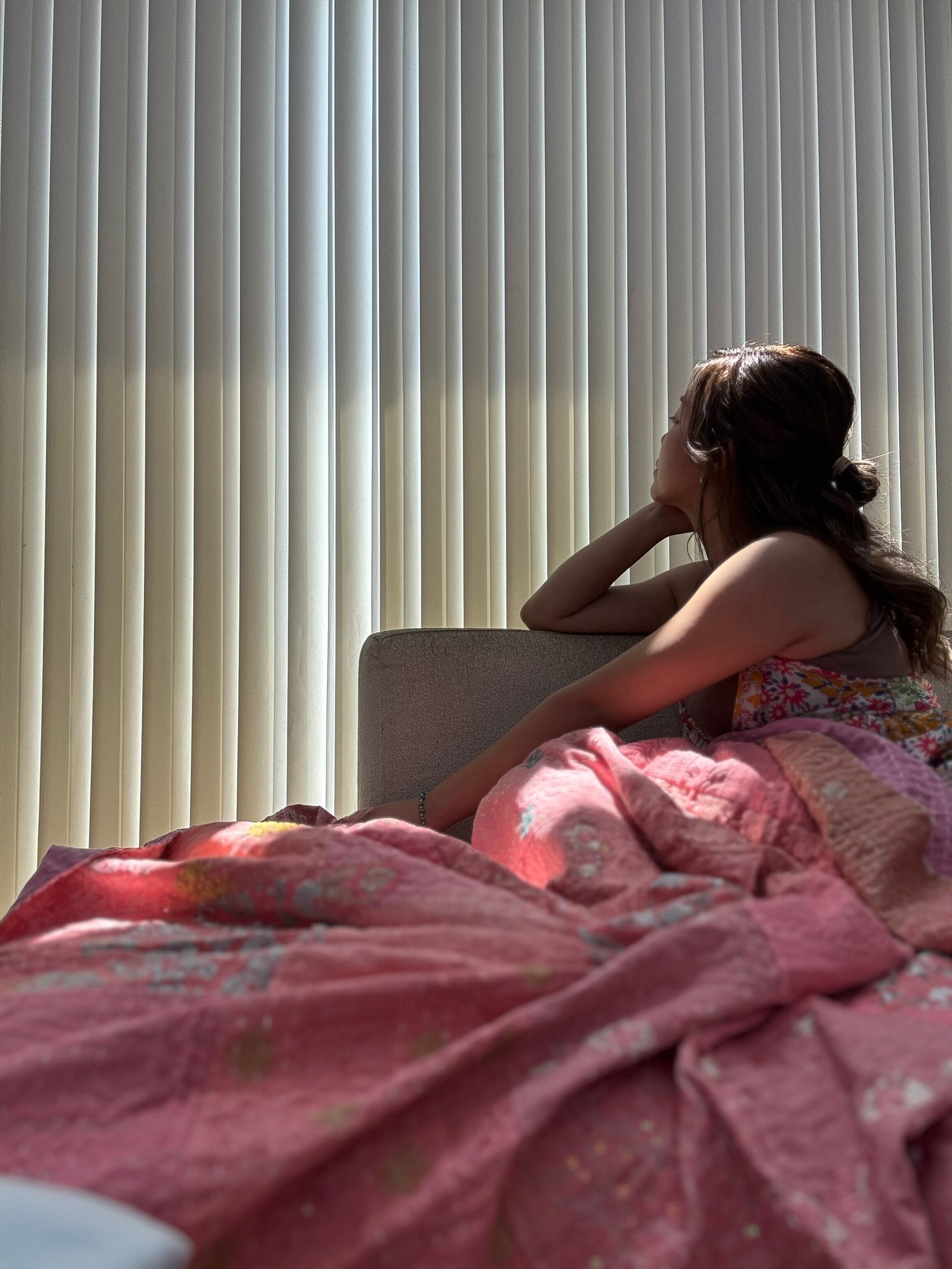 繋ぎ合わせたパッチワークキルトはとても華やか。