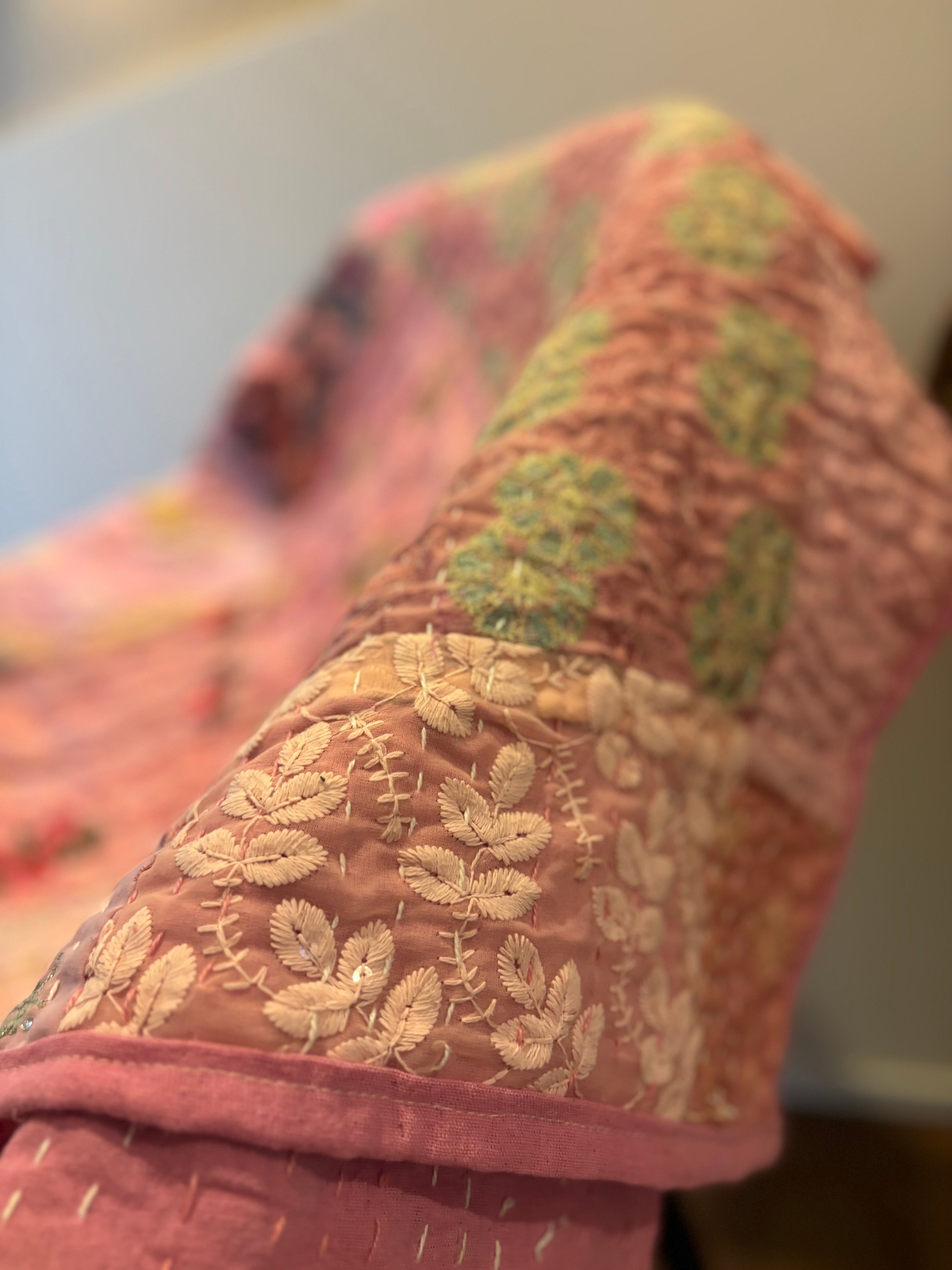 丁寧に刺繍が施された、ヴィンテージサリーなどの