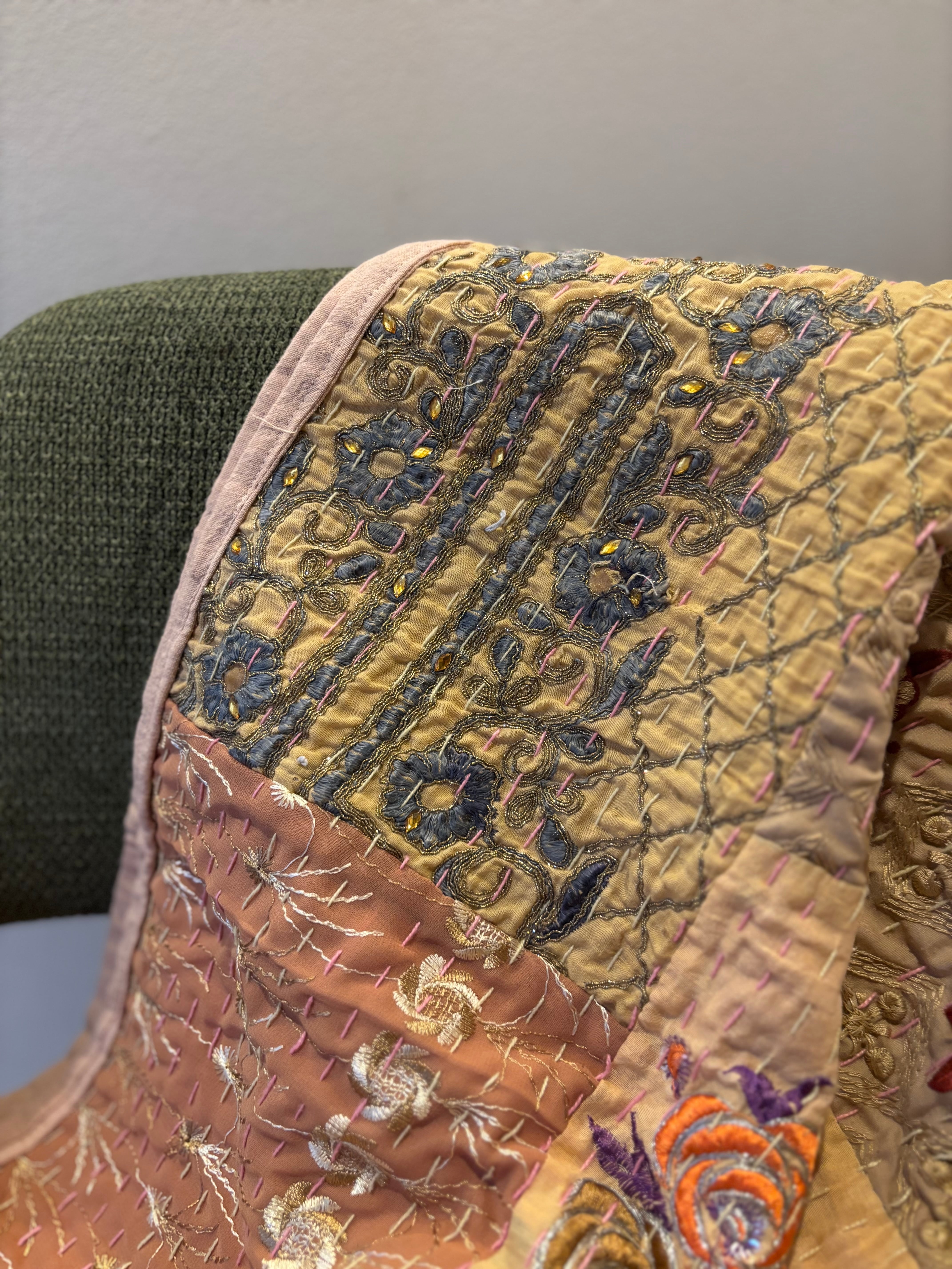 繋ぎ合わせたパッチワークキルトはとても華やか。