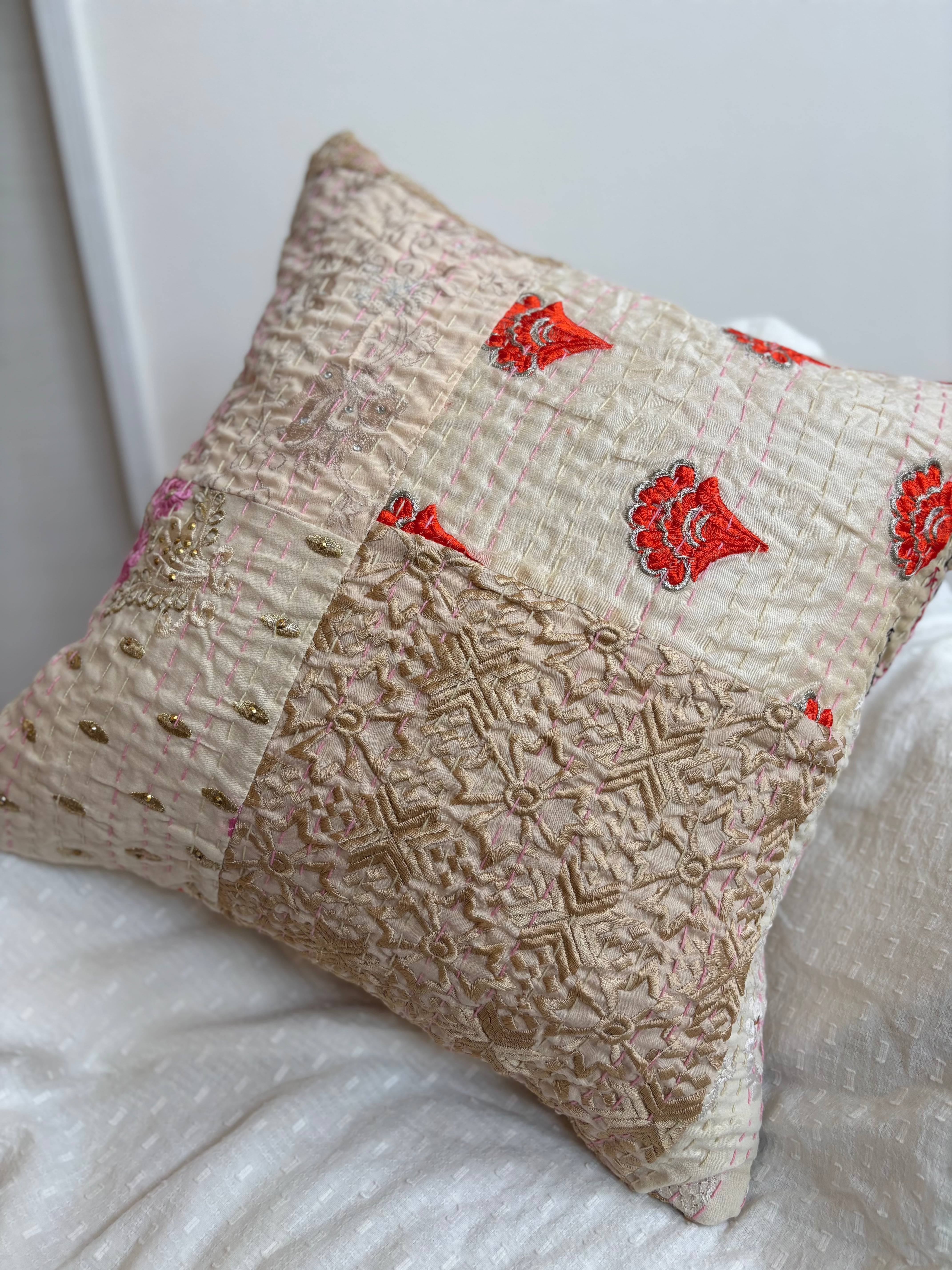 繋ぎ合わせたパッチワークキルトはとても華やか。