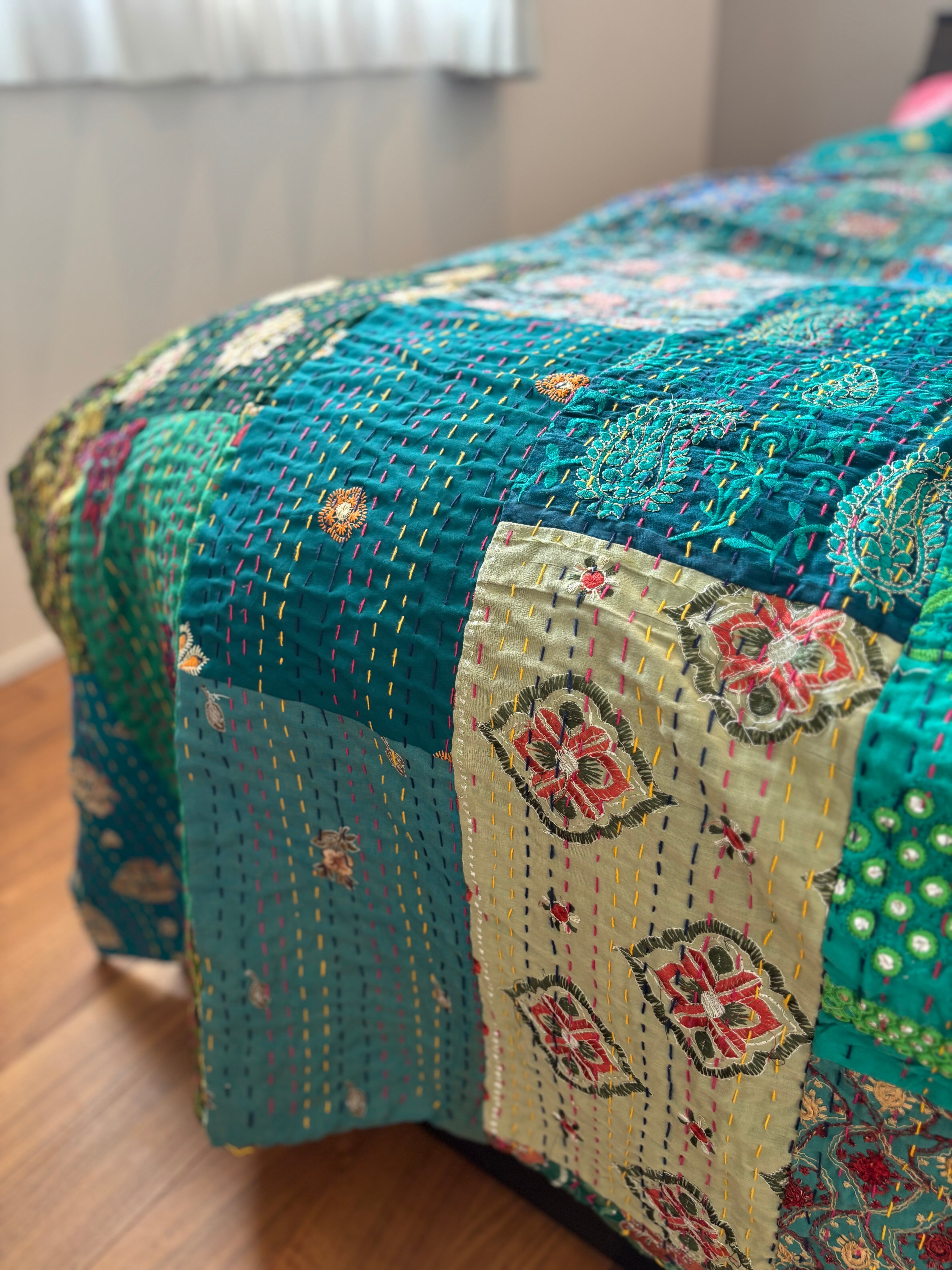 Mカンバディアキルト(シングルサイズ)/ブルーグリーン