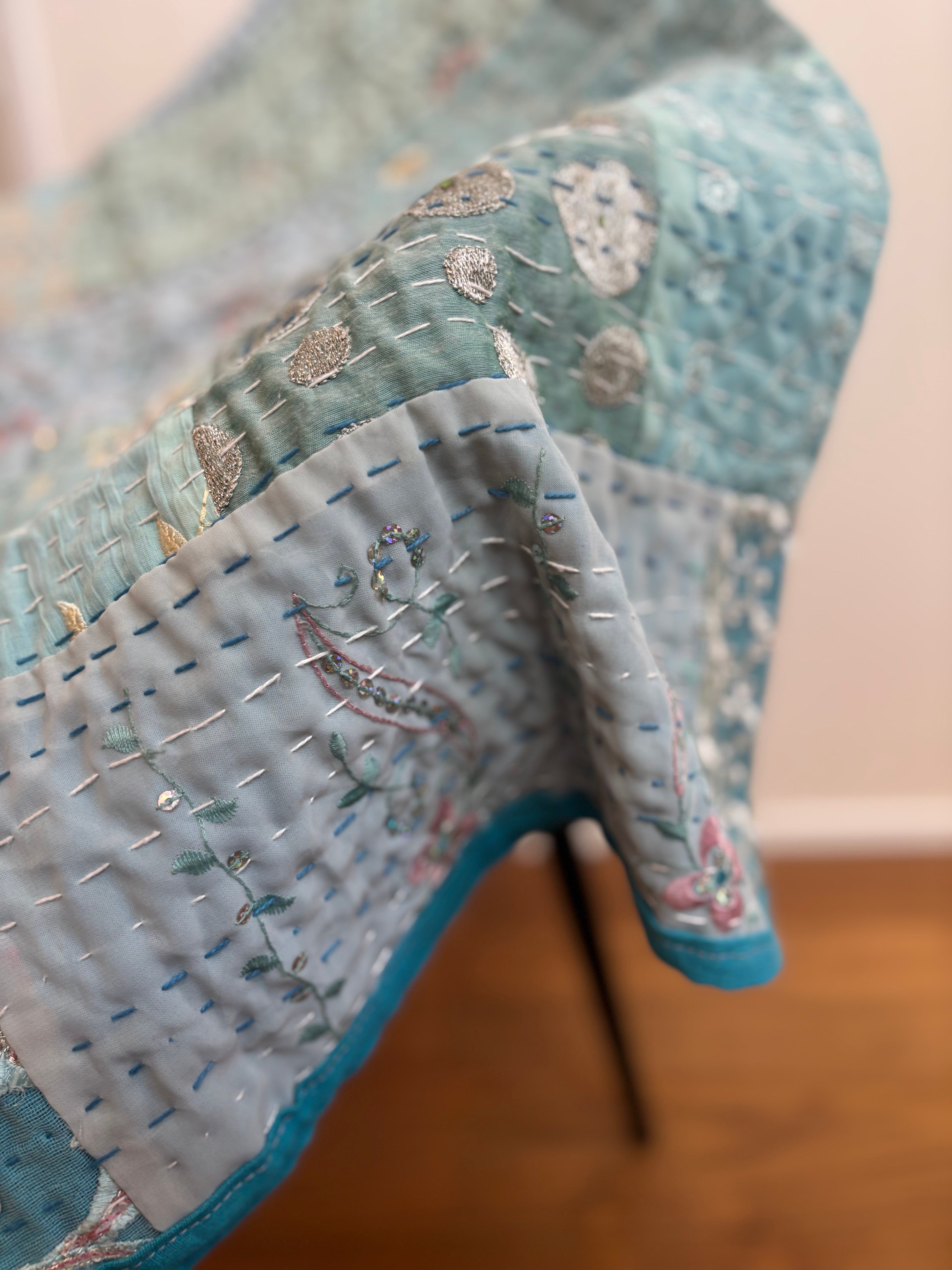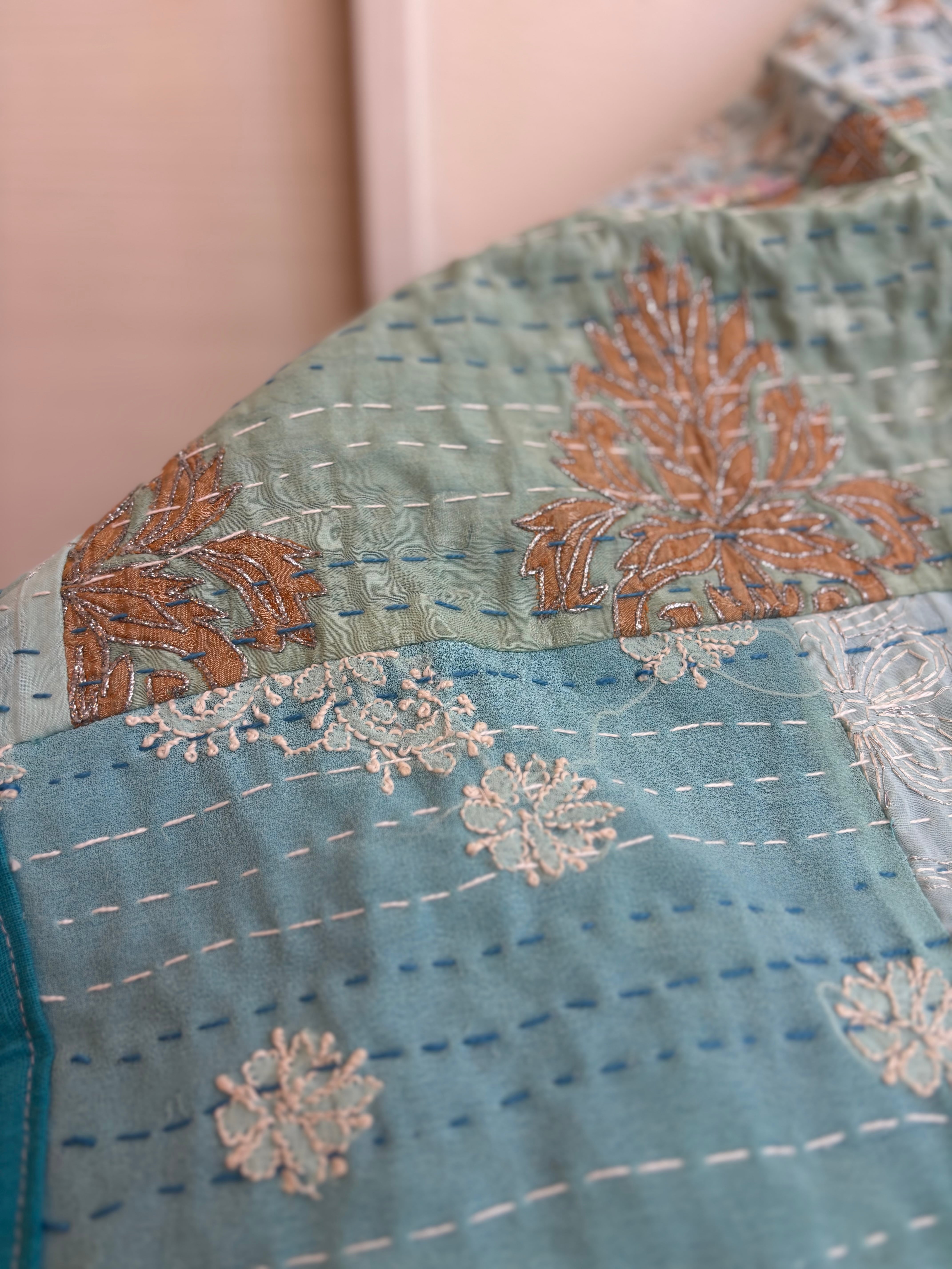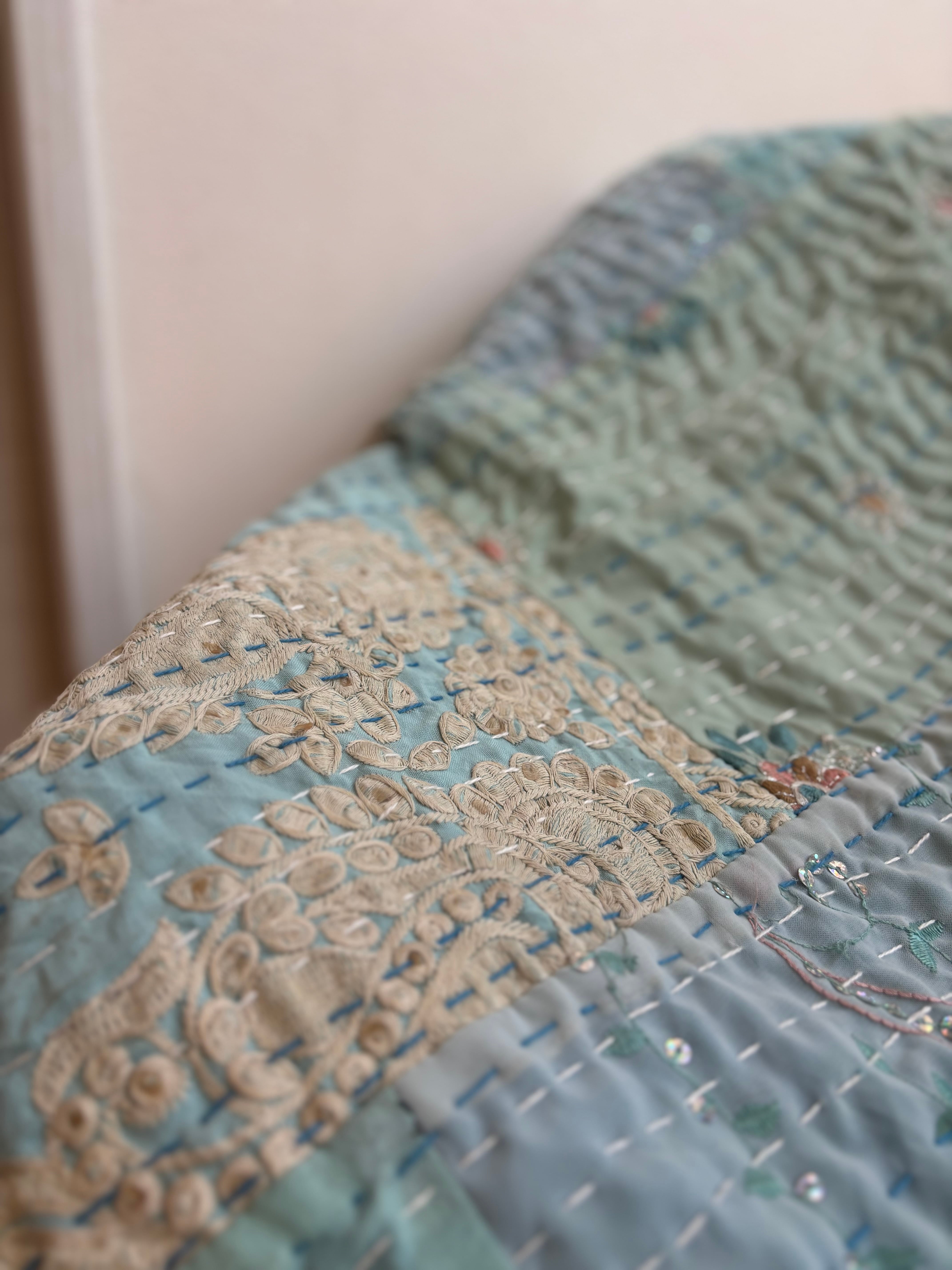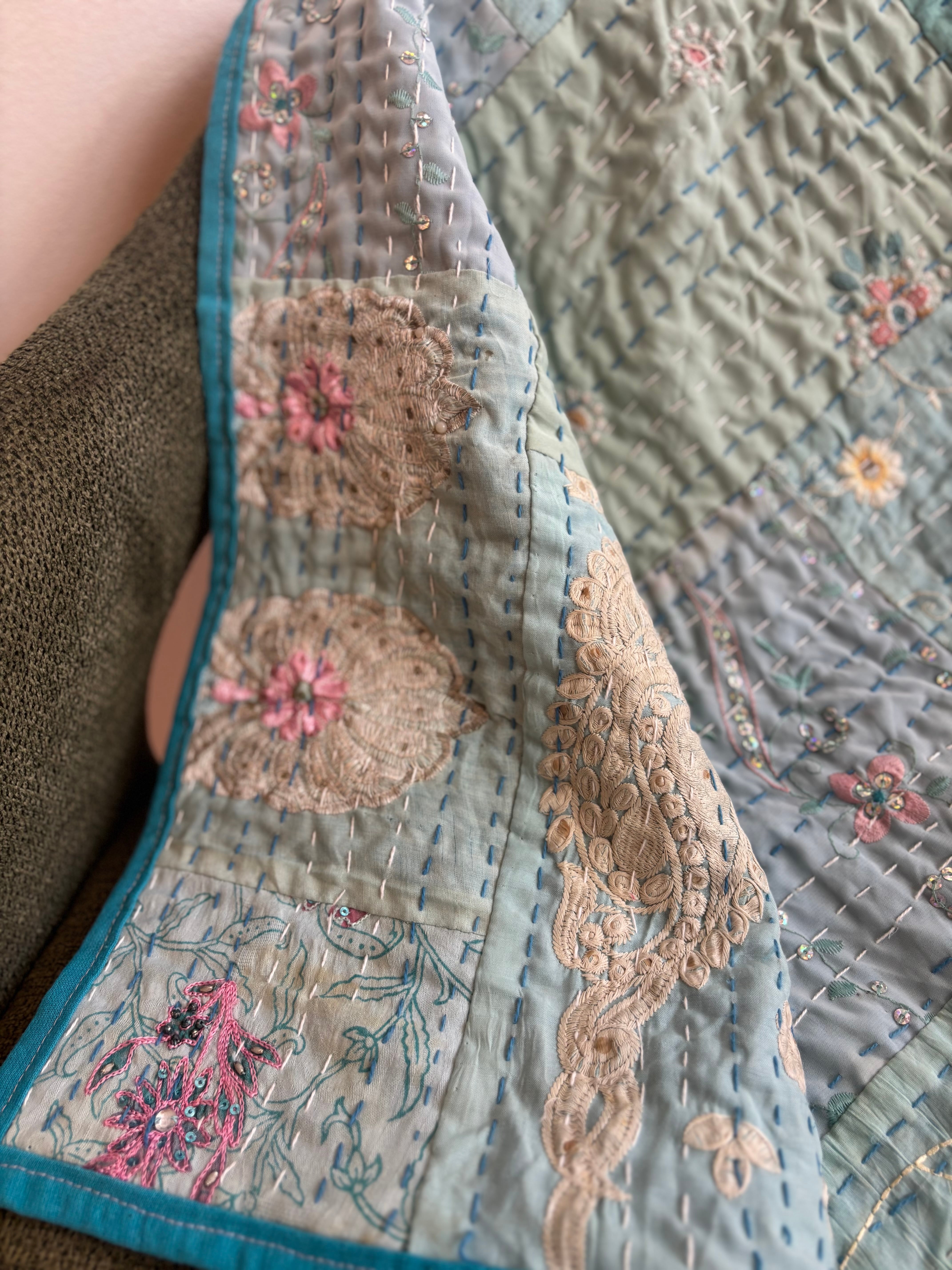繋ぎ合わせたパッチワークキルトはとても華やか。