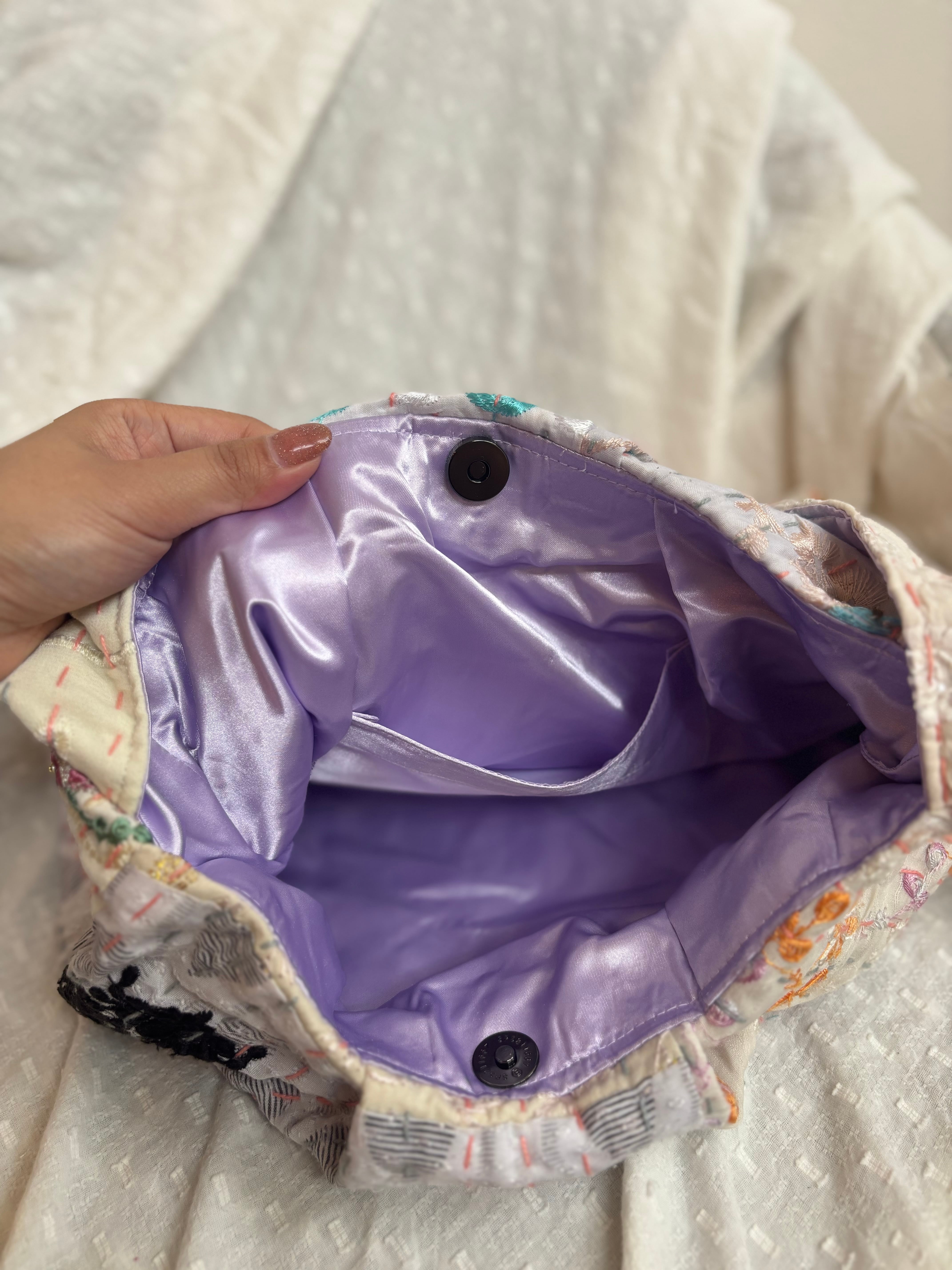 ・カラー:アイボリー、サテンラベンダー(裏地)