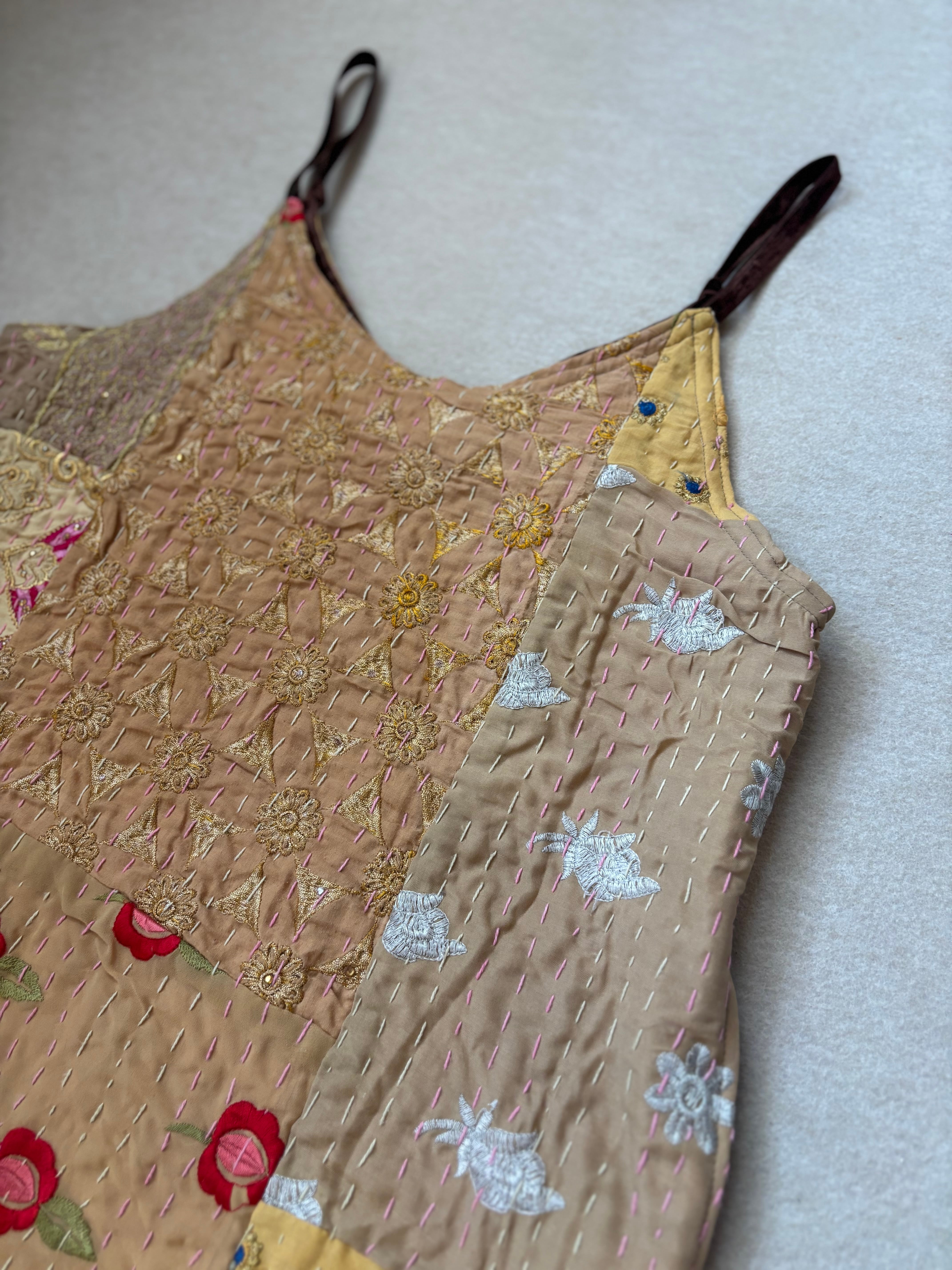 繋ぎ合わせたパッチワークキルトはとても華やか。