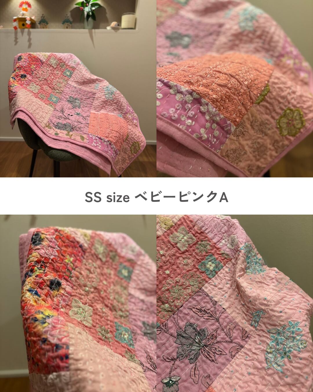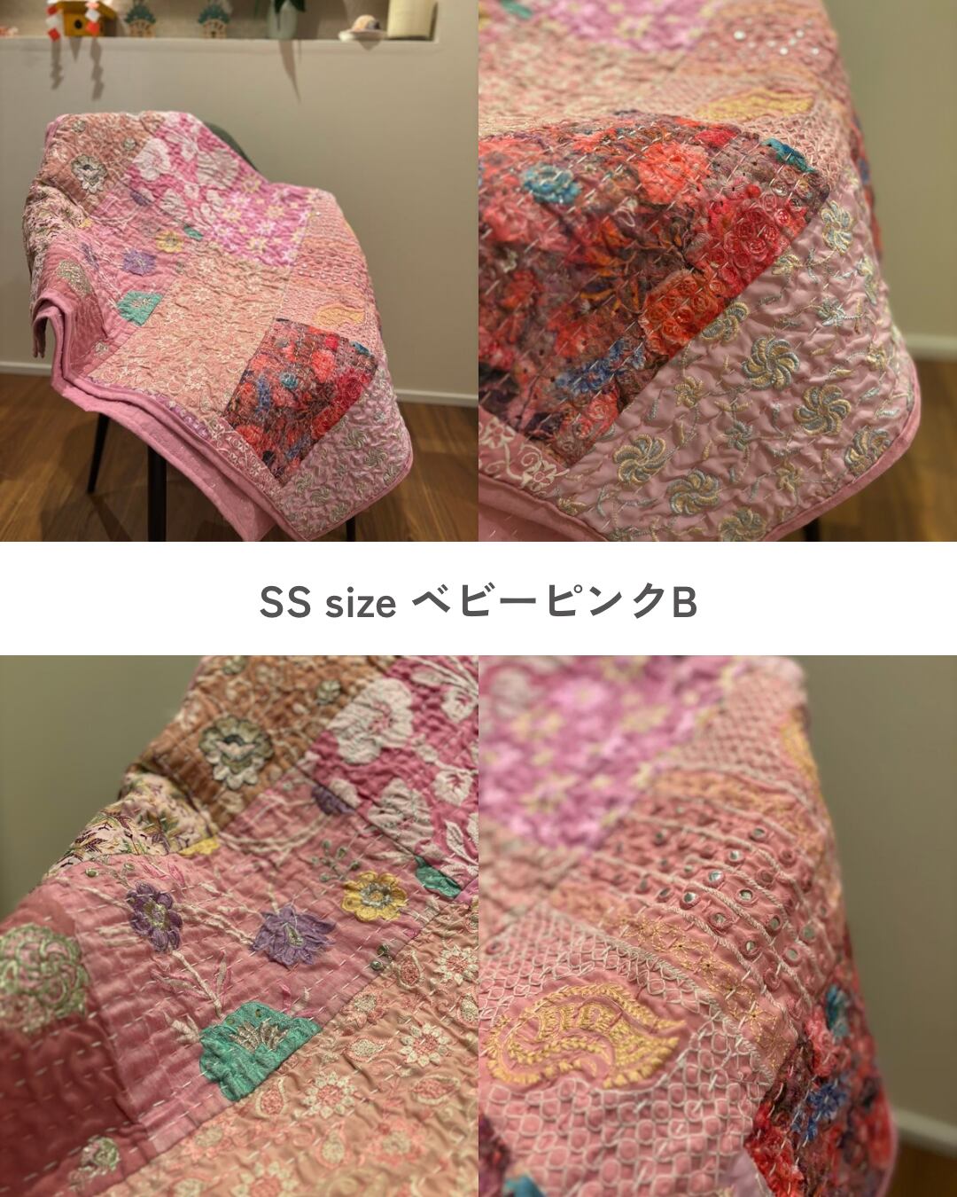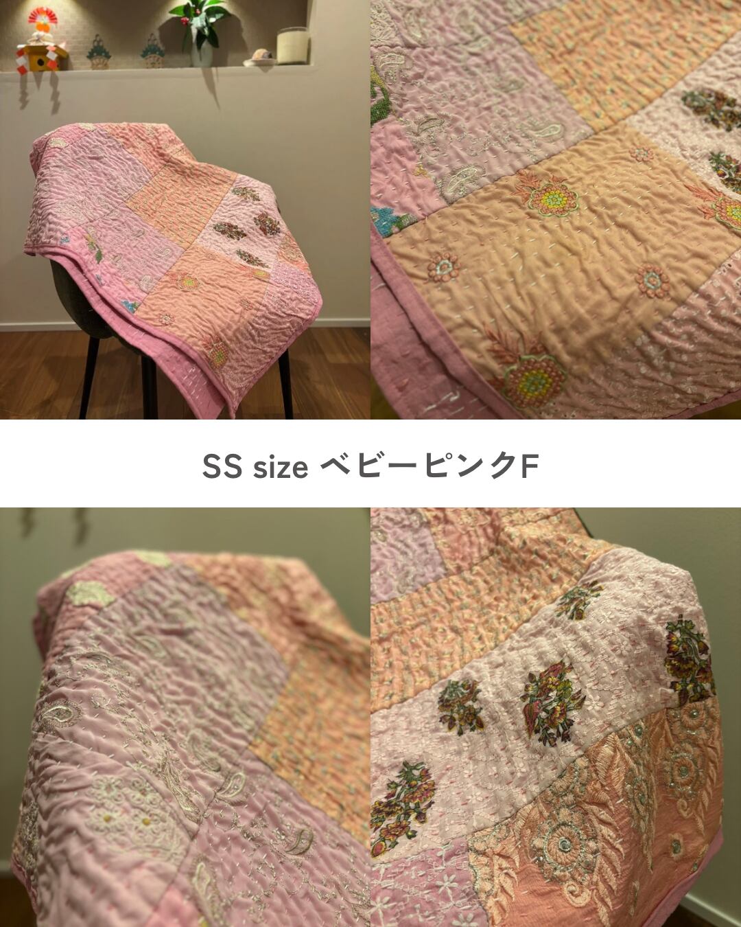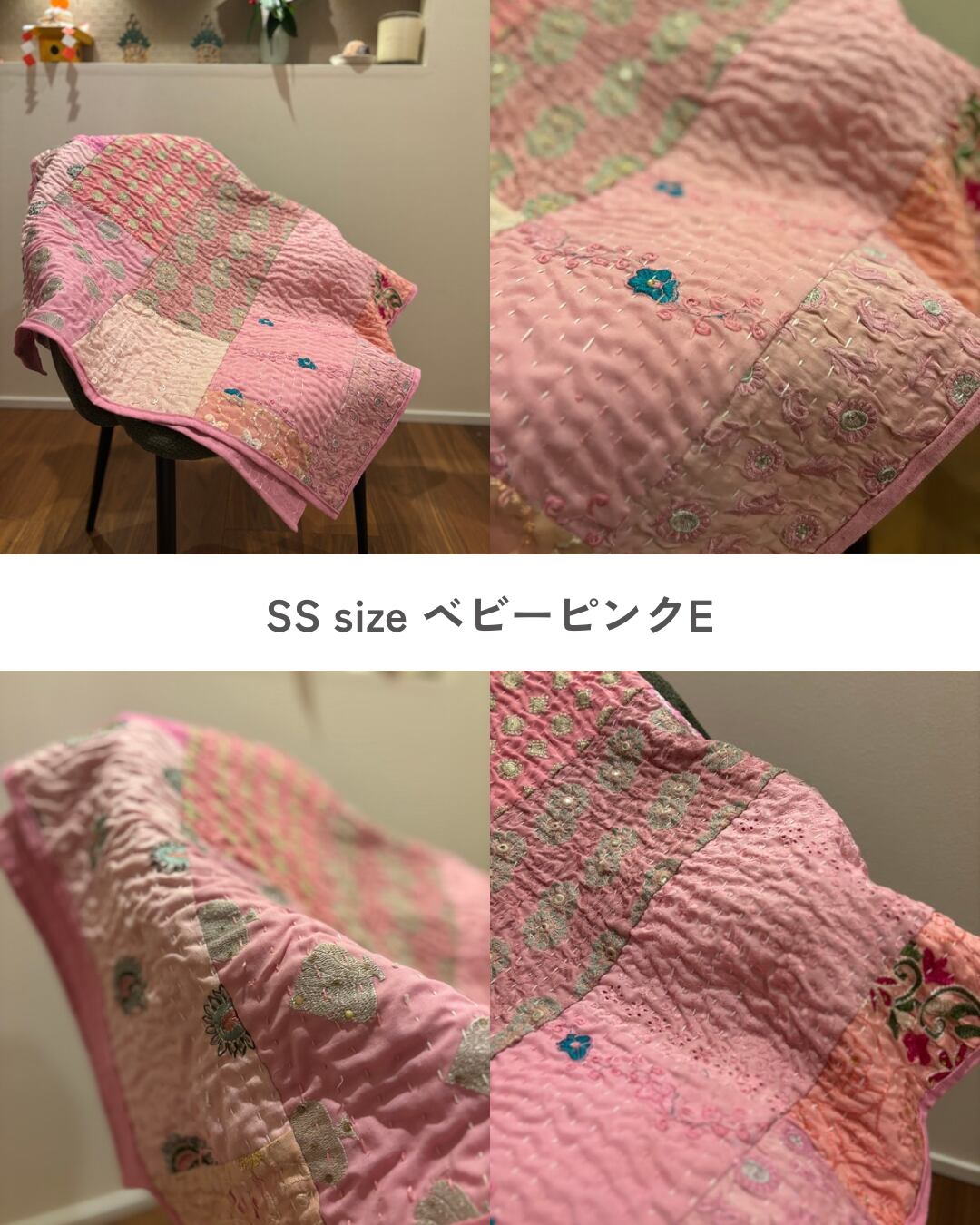 【SS】ベビーピンク カンバディアキルト(ひざかけサイズ) インド刺繍パッチワーク