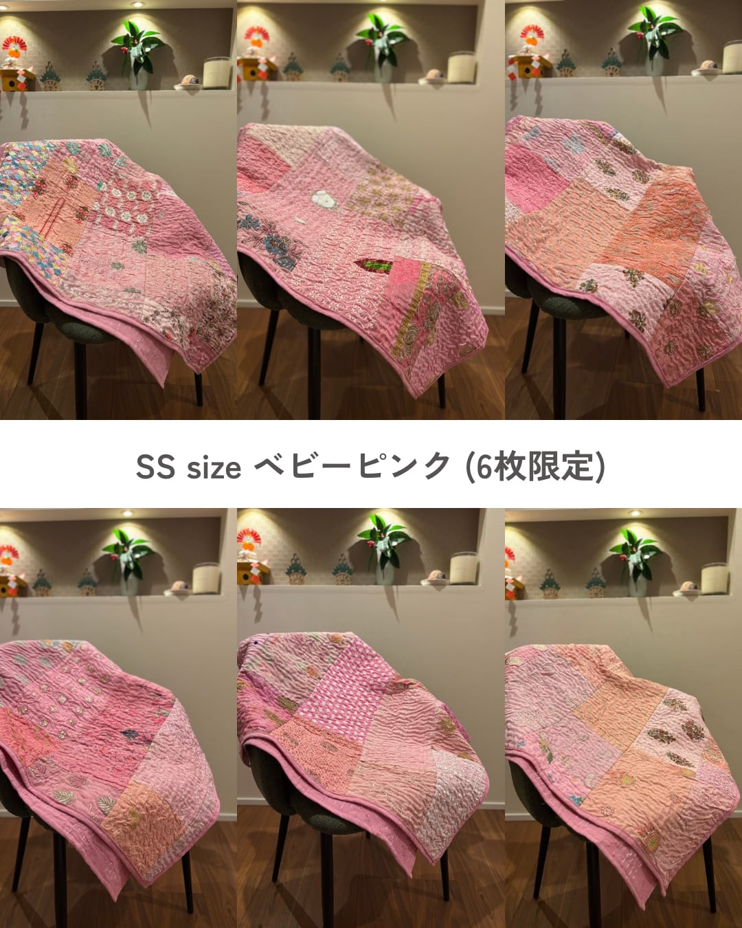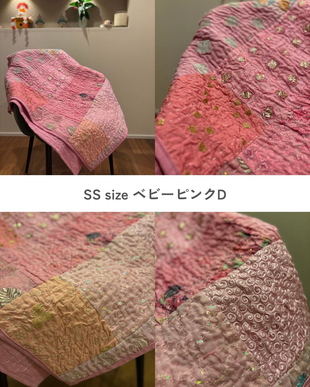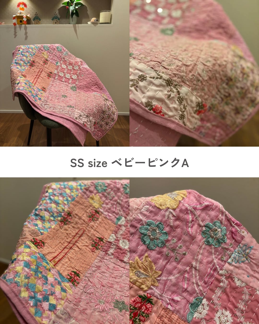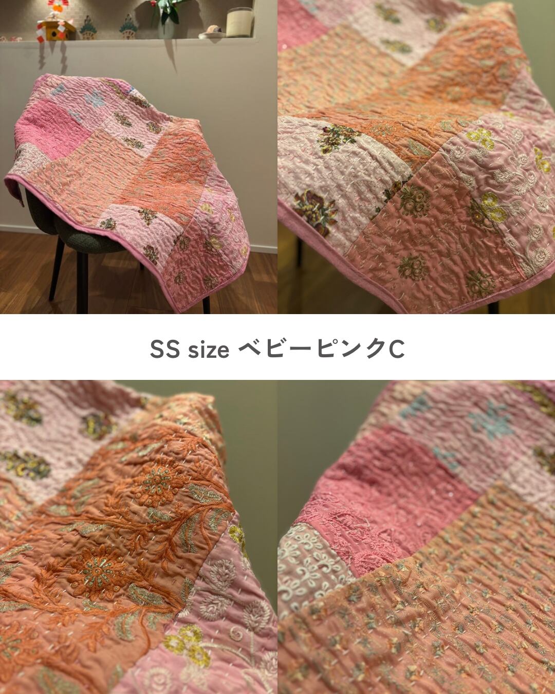 【SS】ベビーピンク カンバディアキルト(ひざかけサイズ) インド刺繍パッチワーク