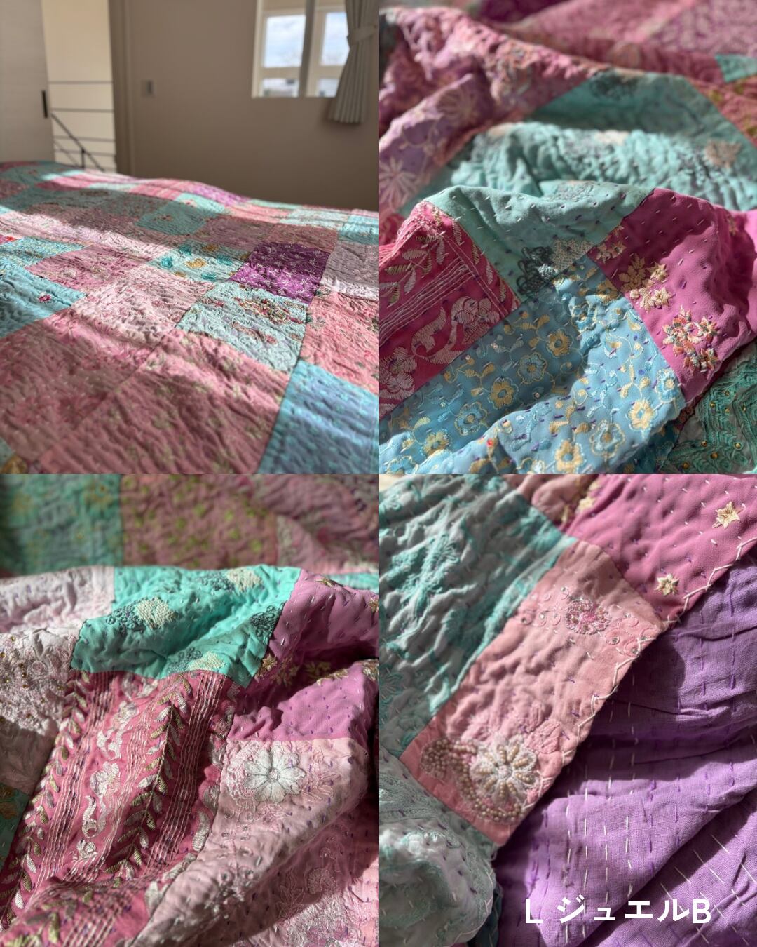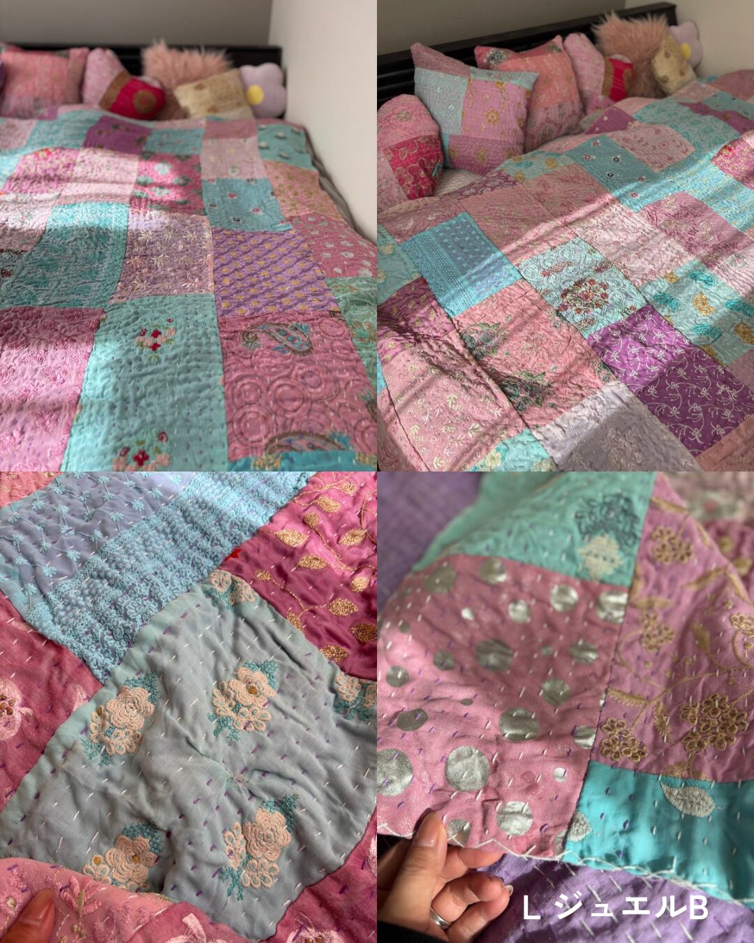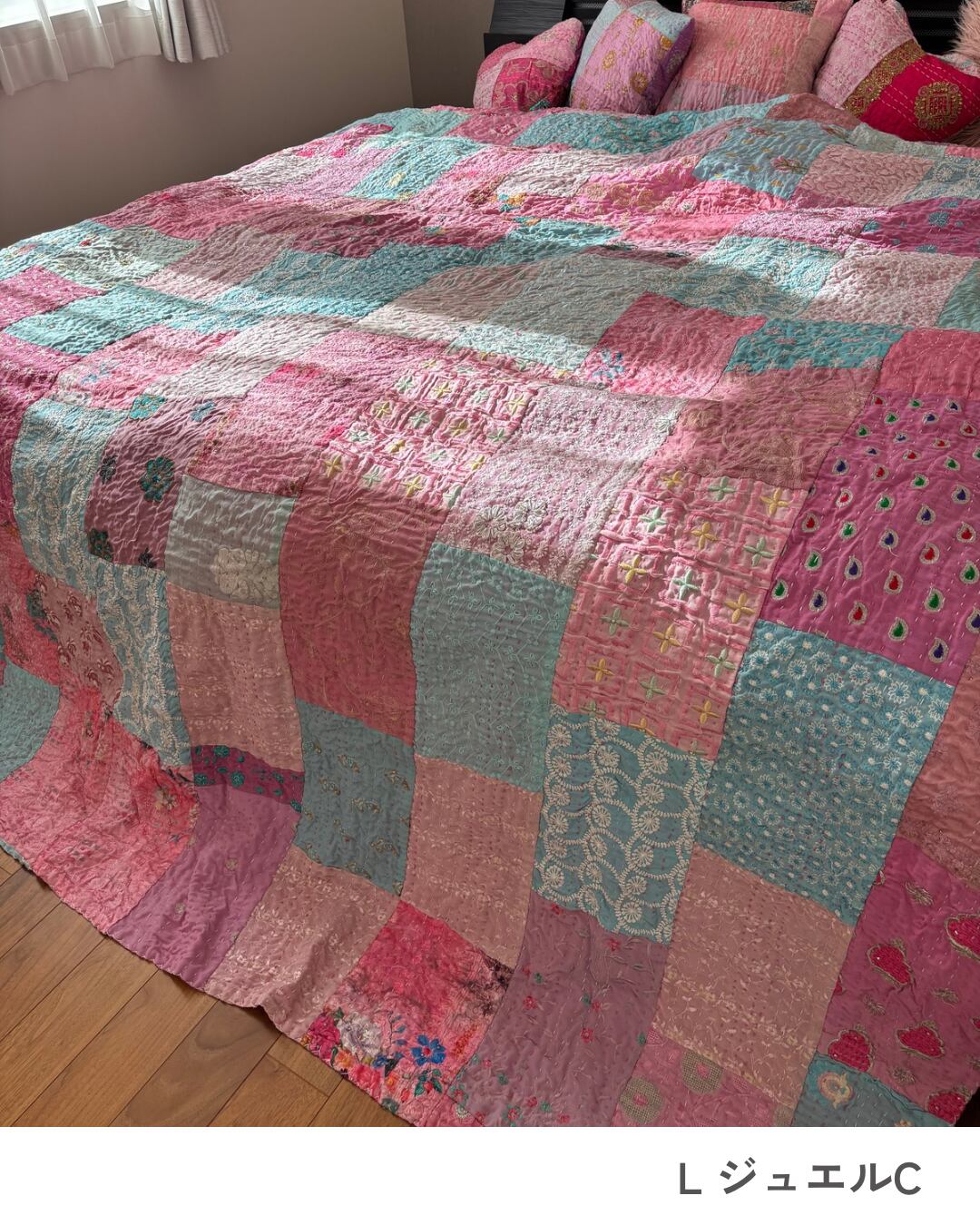 【L】ジュエル カンバディアキルト(ダブルサイズ) インド刺繍パッチワーク