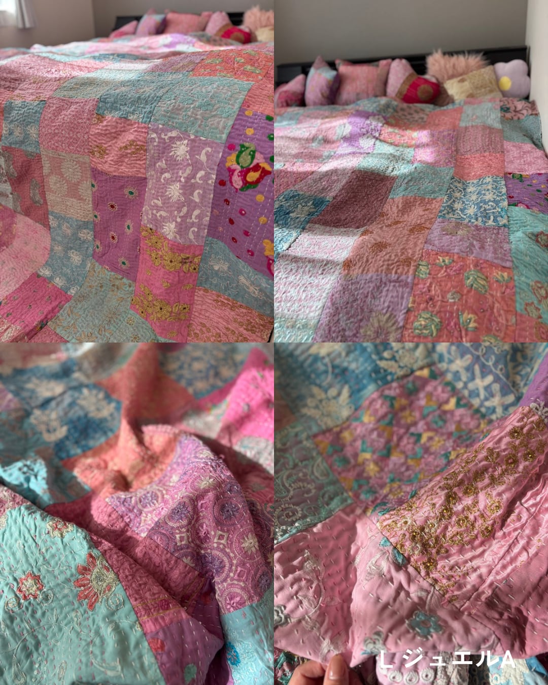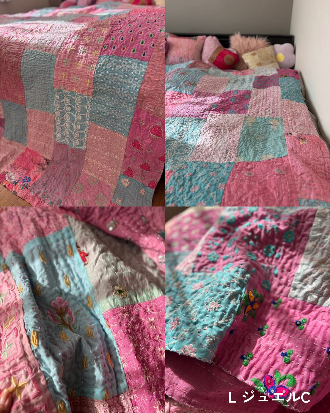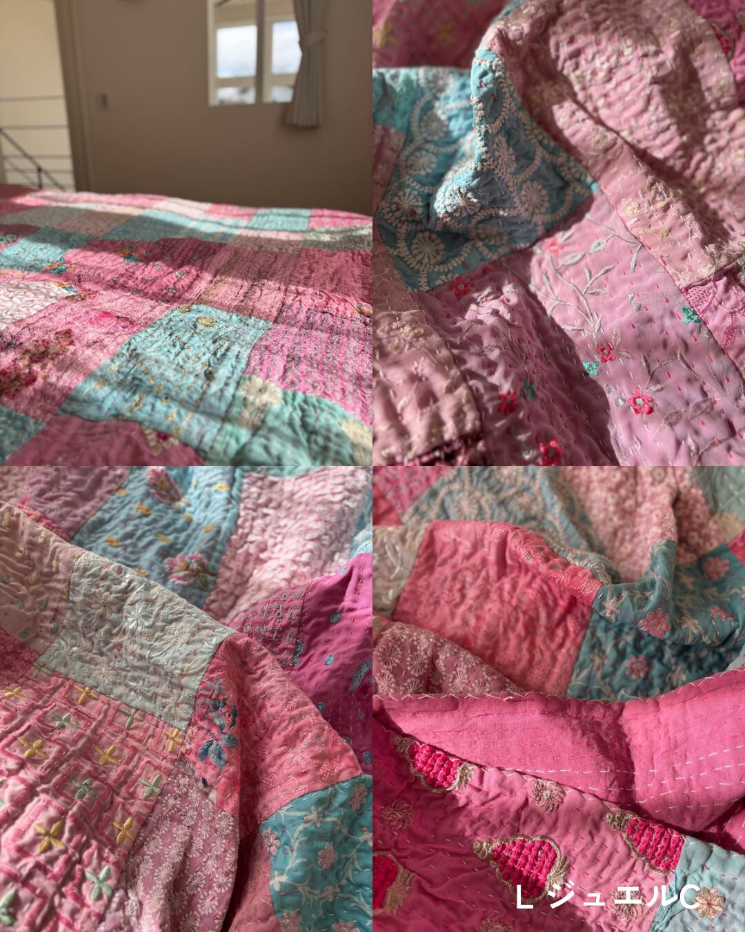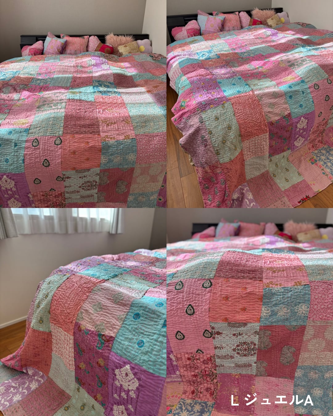 【L】ジュエル カンバディアキルト(ダブルサイズ) インド刺繍パッチワーク