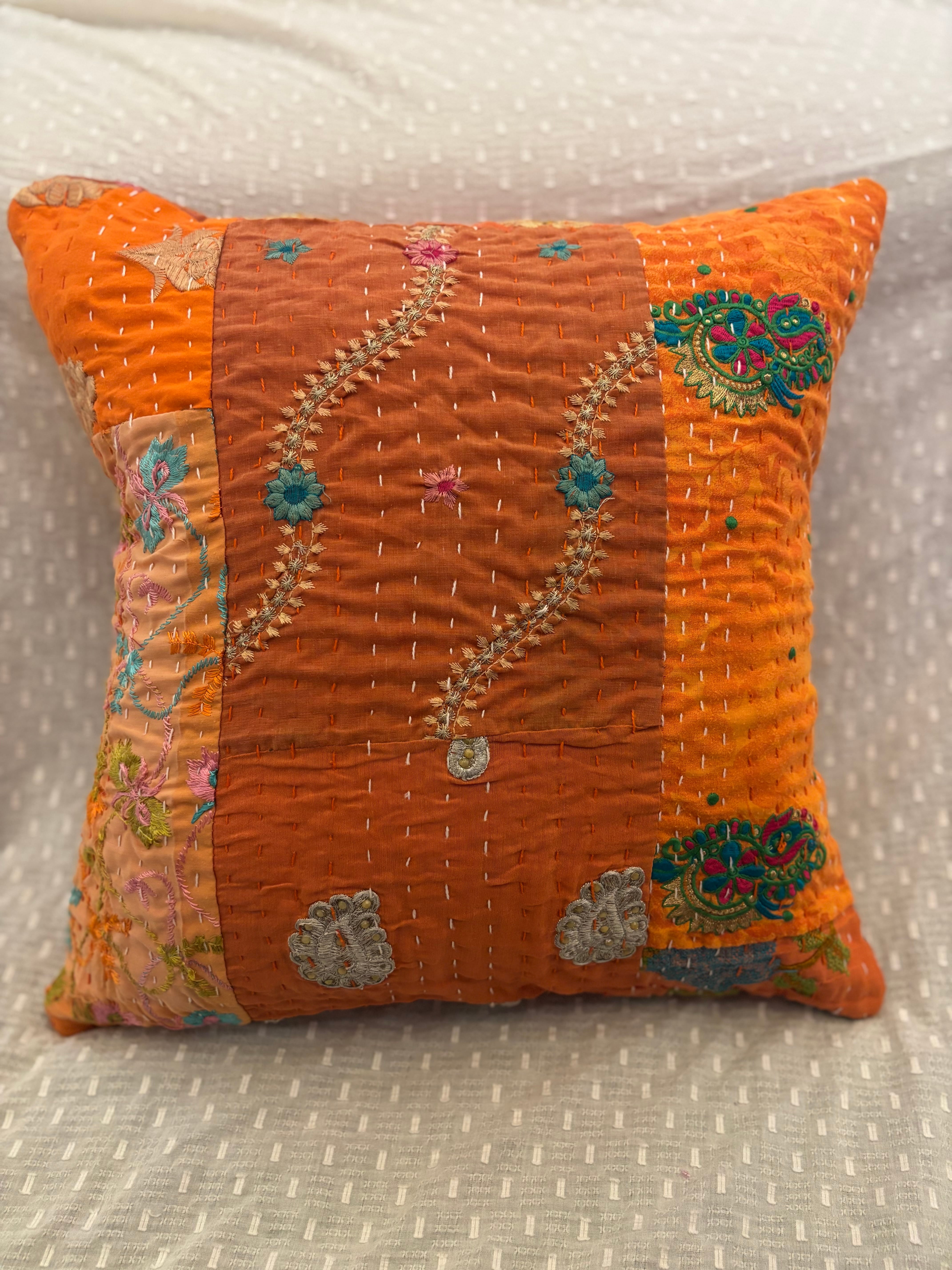 カンバディアキルトクッションカバー/オレンジ