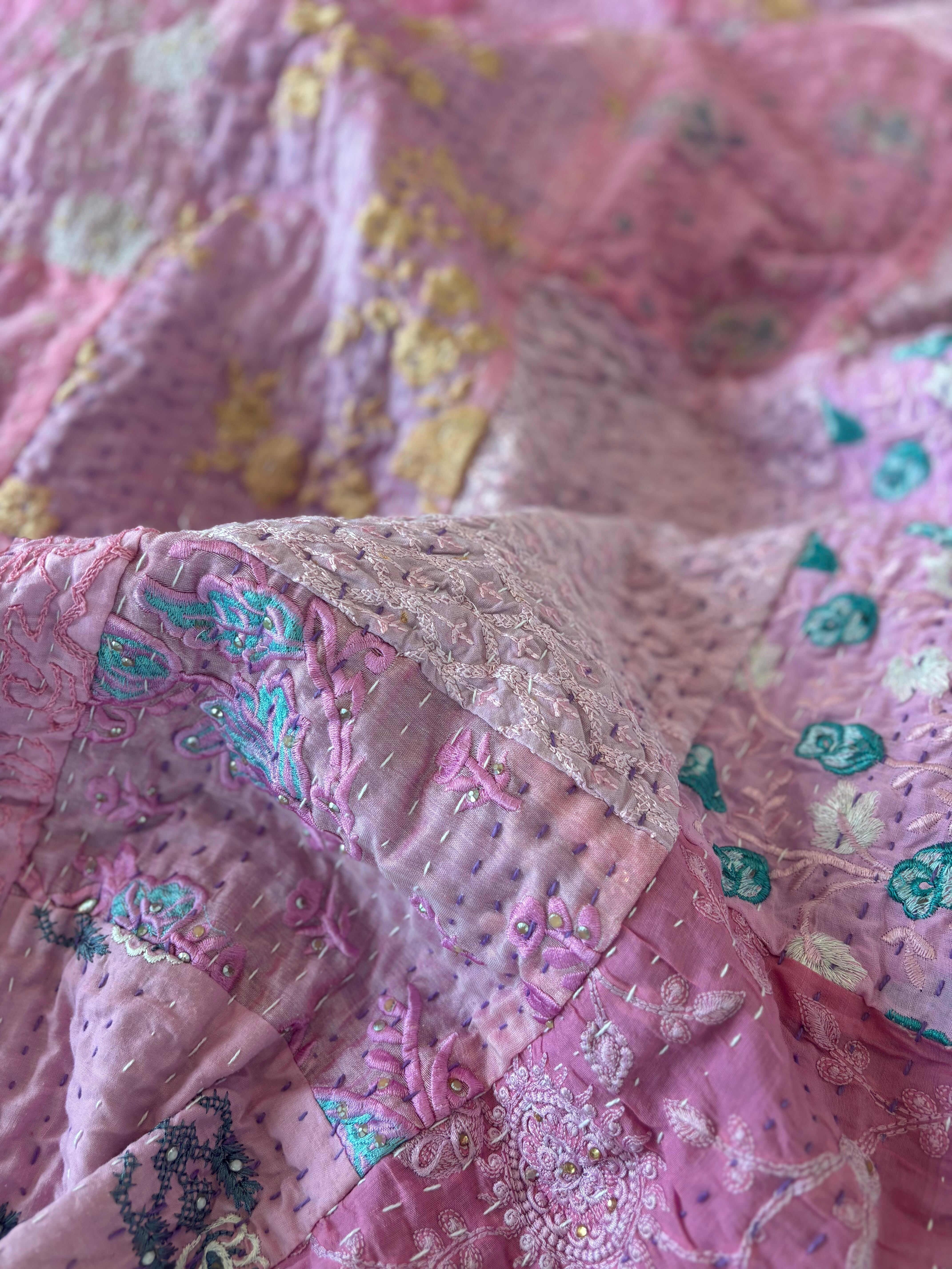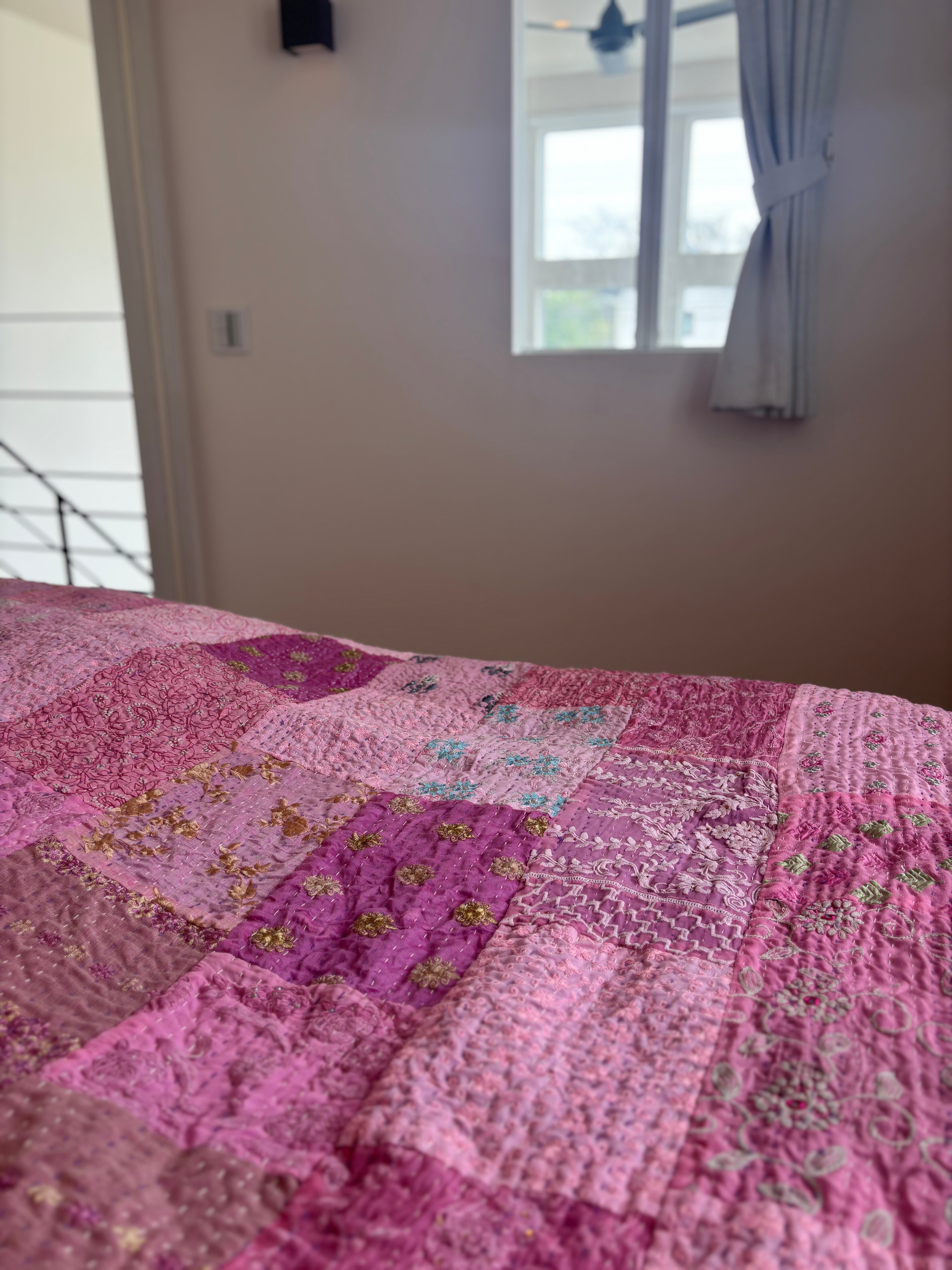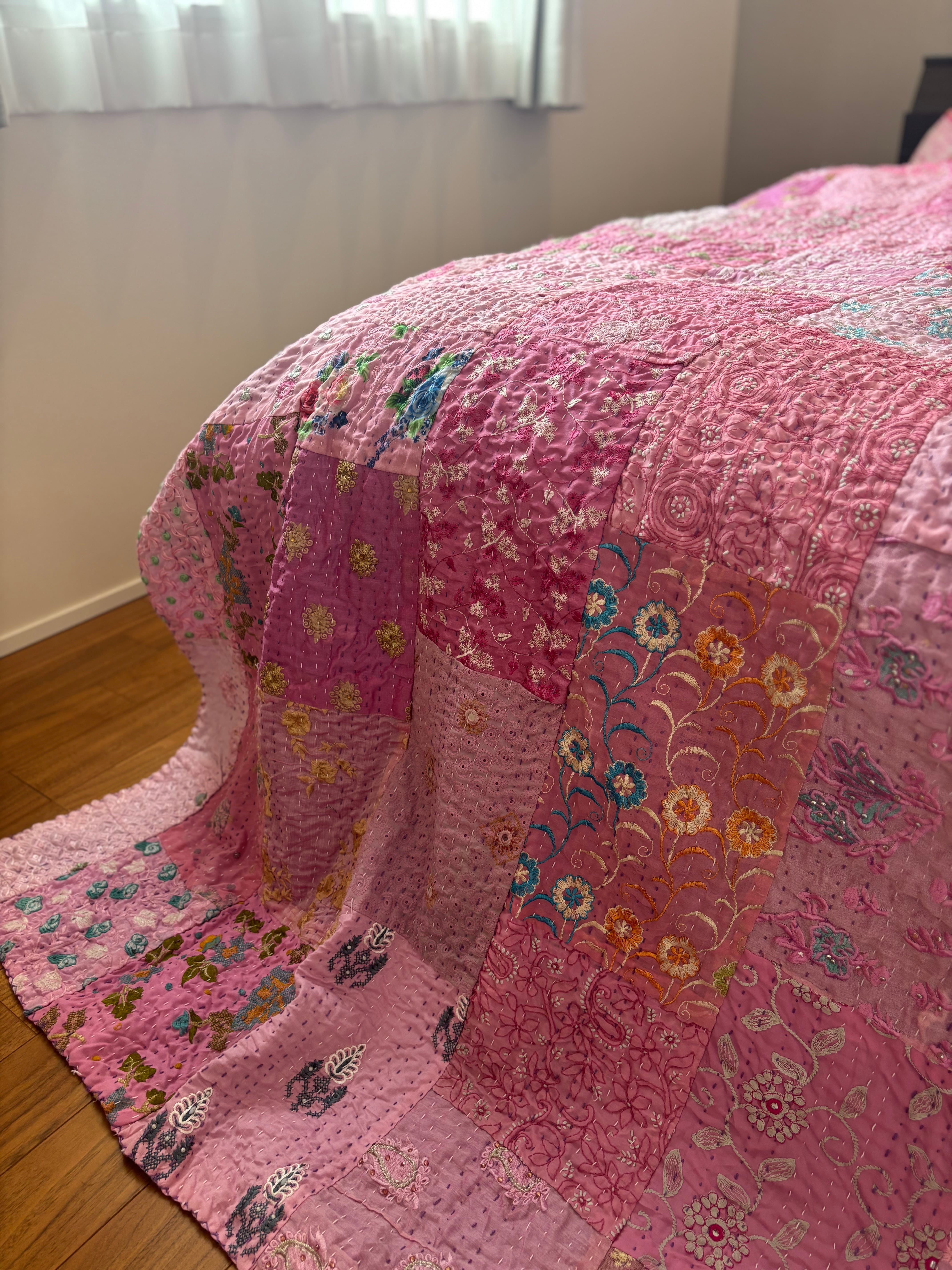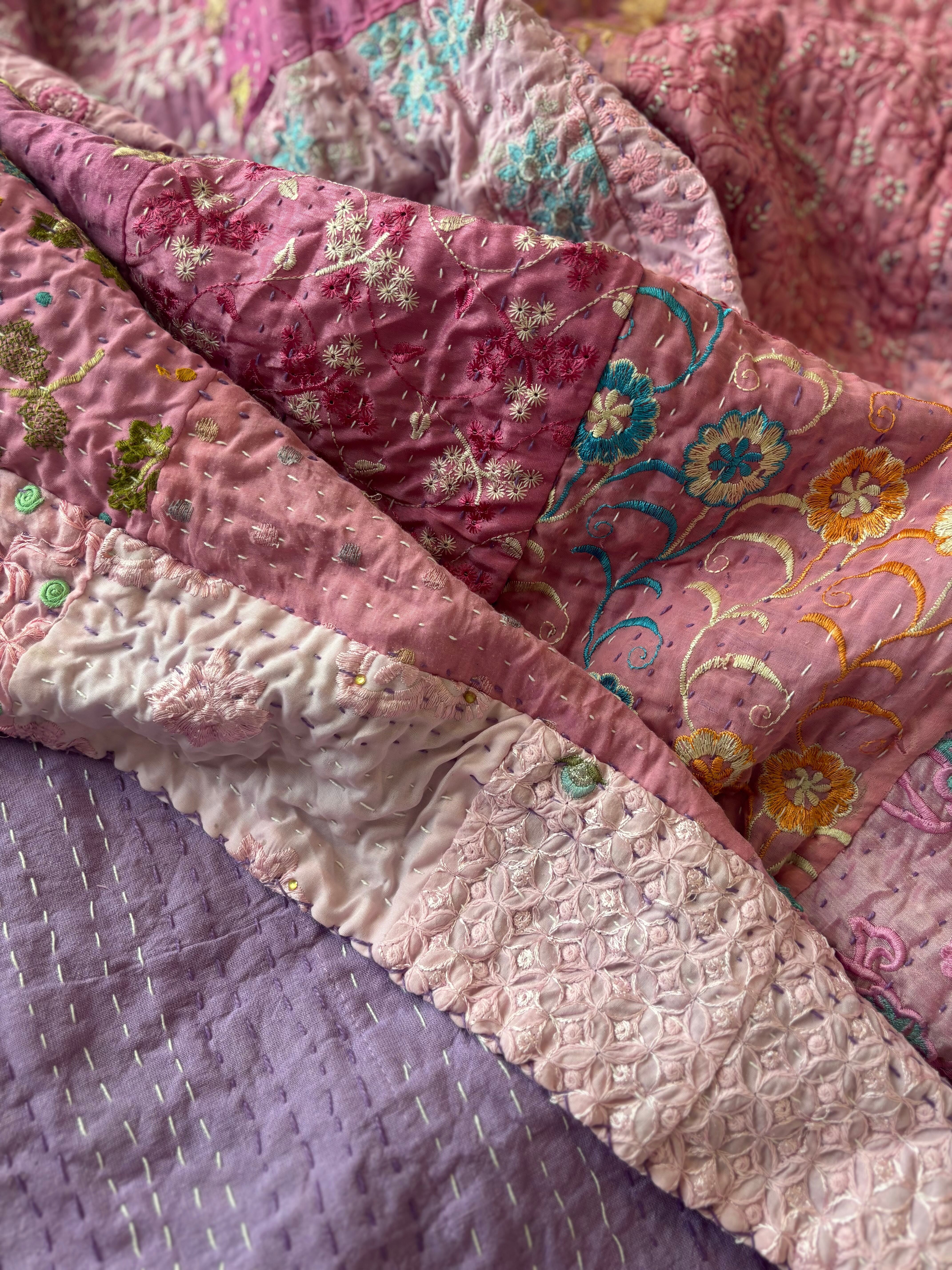 オンライン限定【L】ラベンダーB カンバディアキルト(ダブルサイズ) インド刺繍パッチワーク