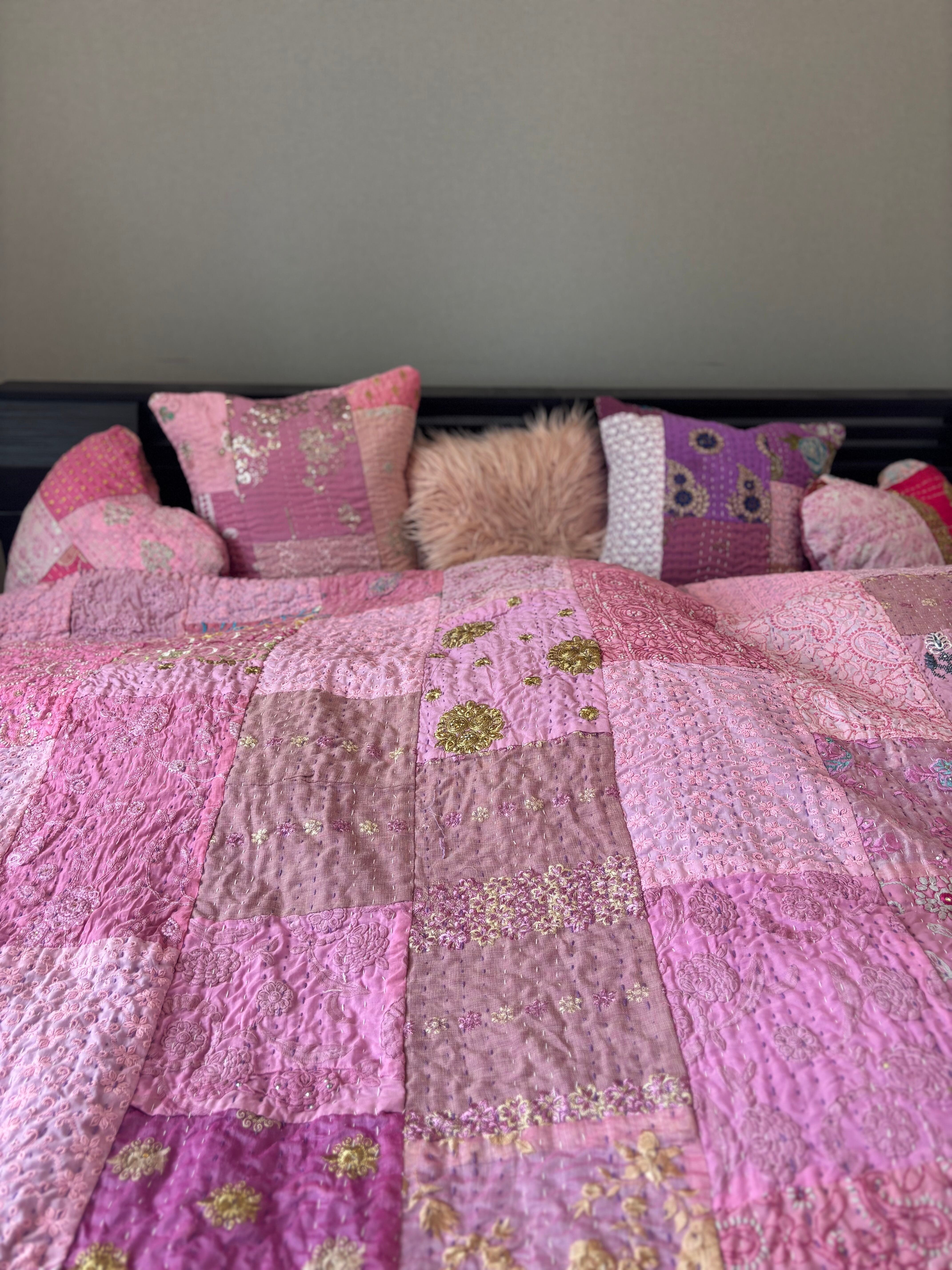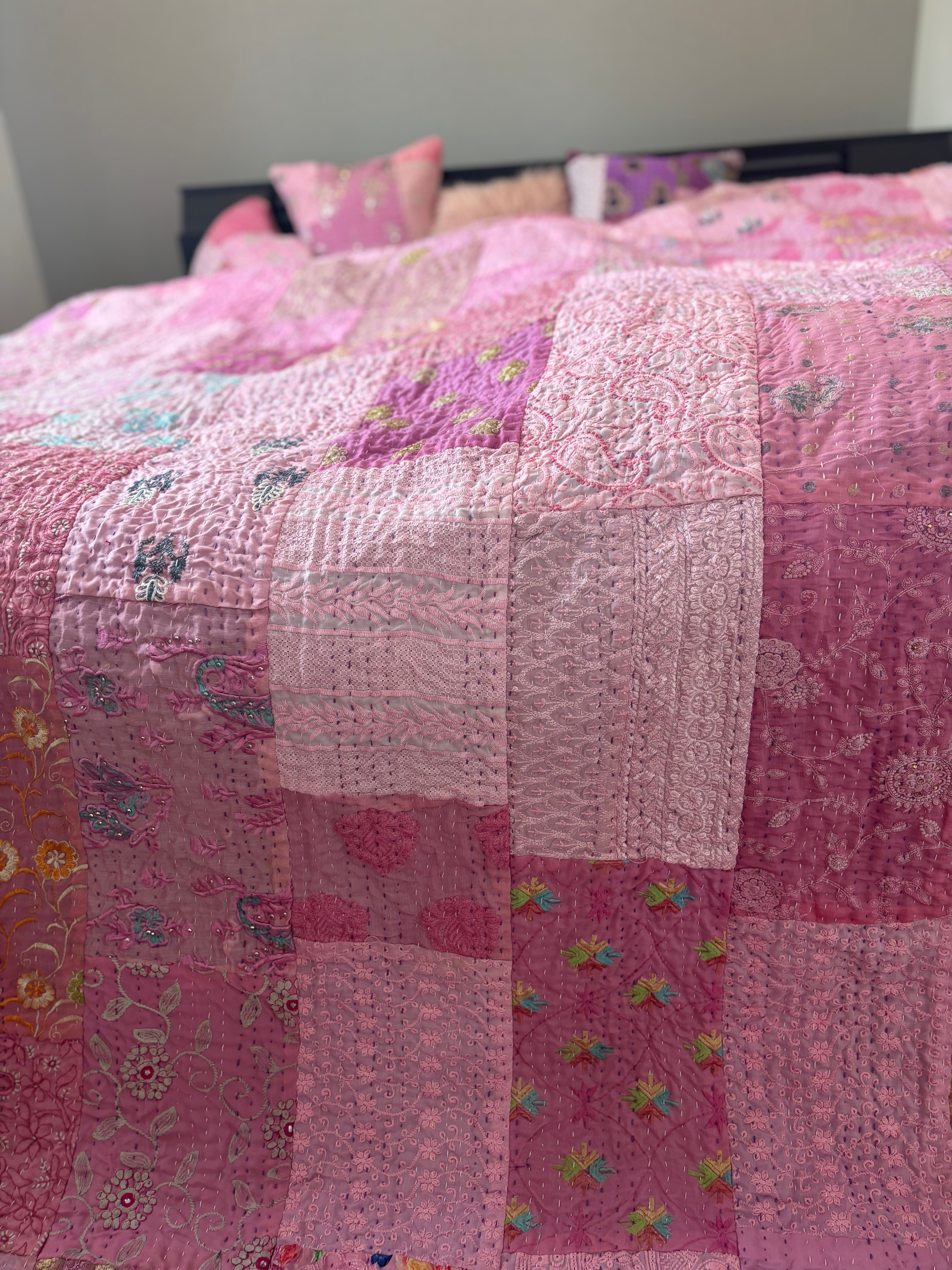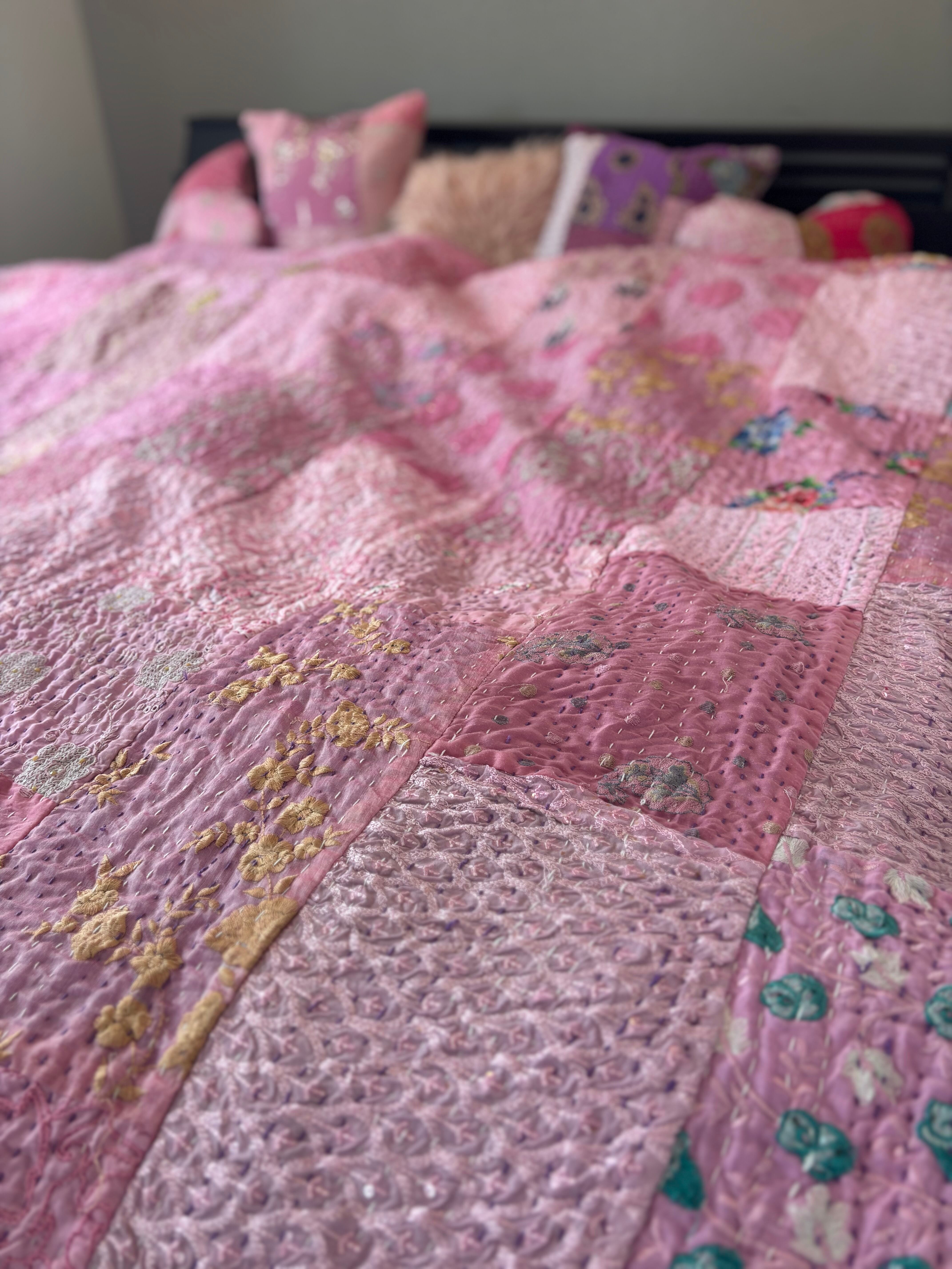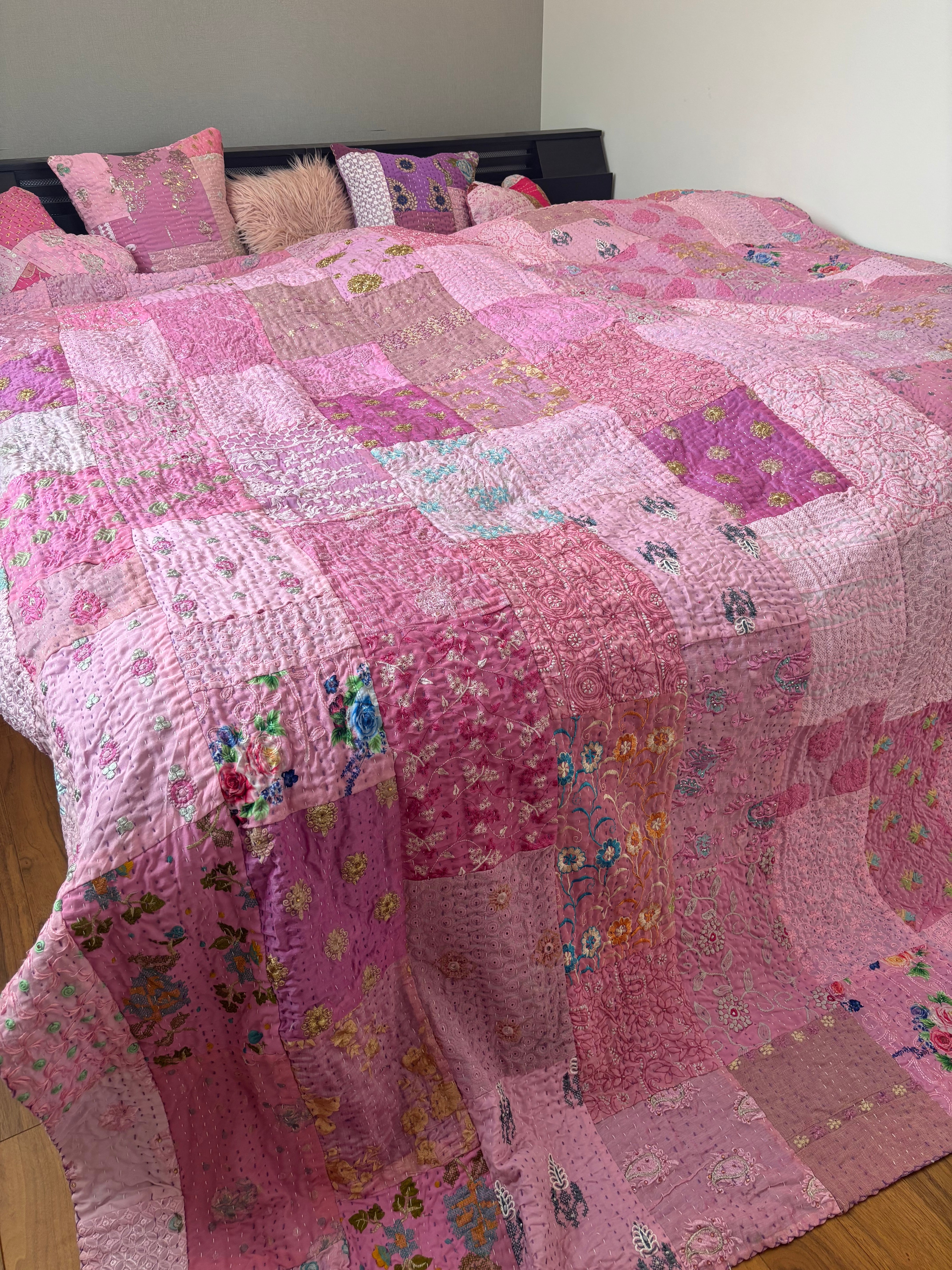 オンライン限定【L】ラベンダーB カンバディアキルト(ダブルサイズ) インド刺繍パッチワーク