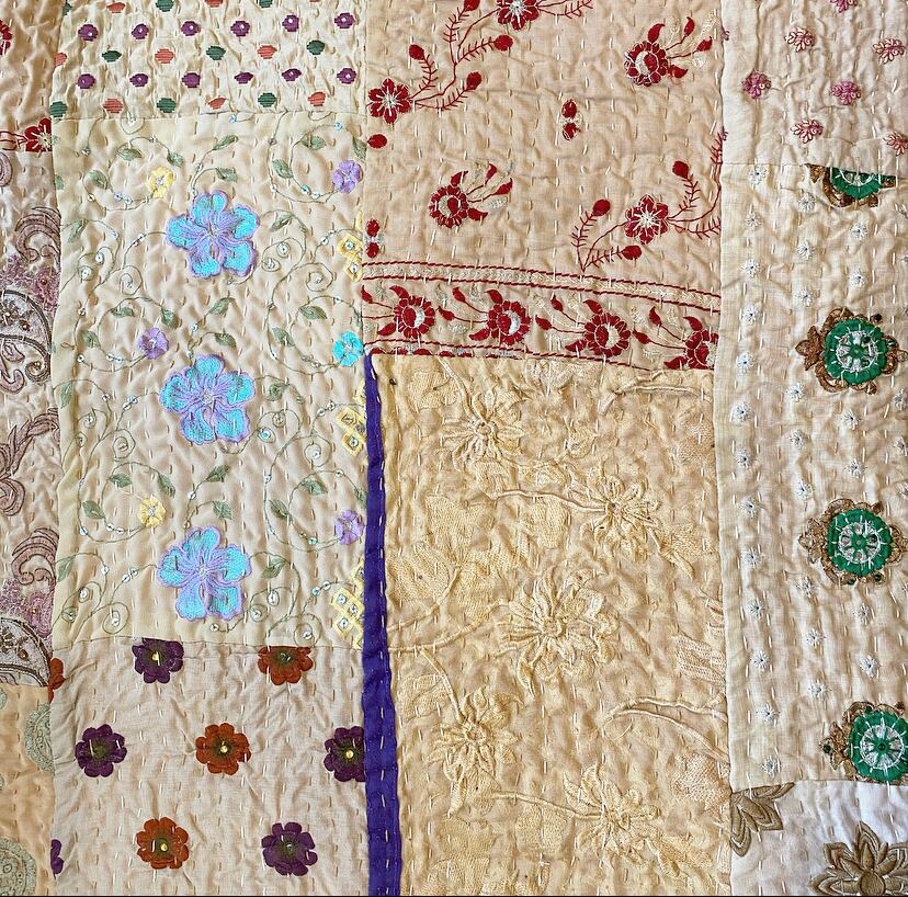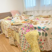 繋ぎ合わせたパッチワークキルトはとても華やか。