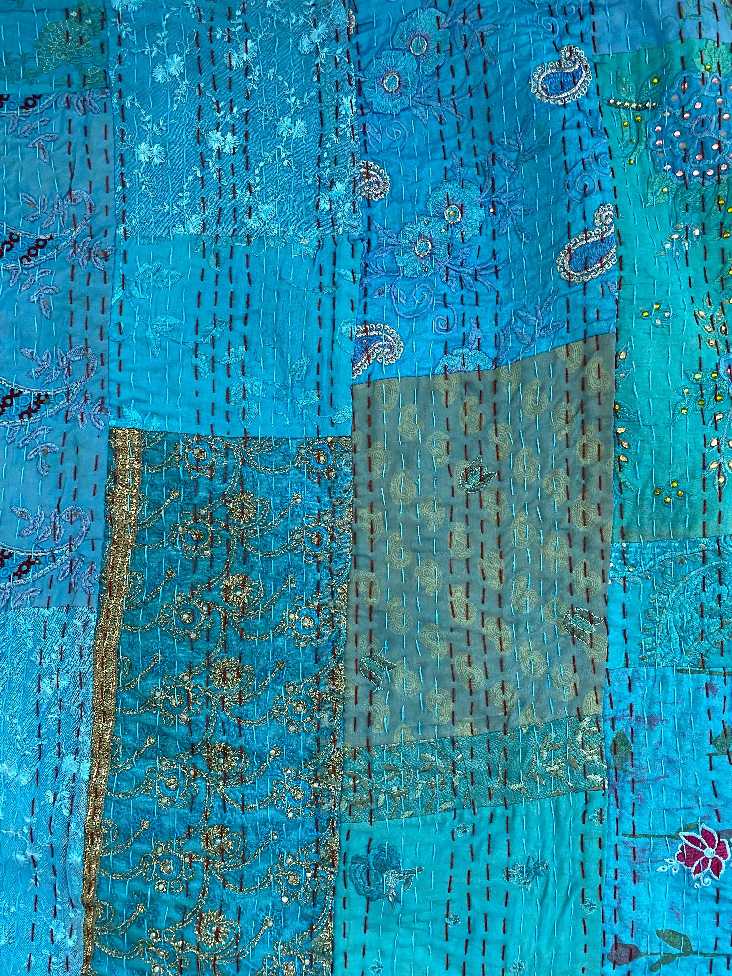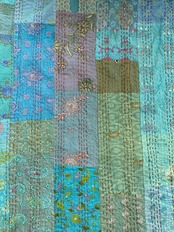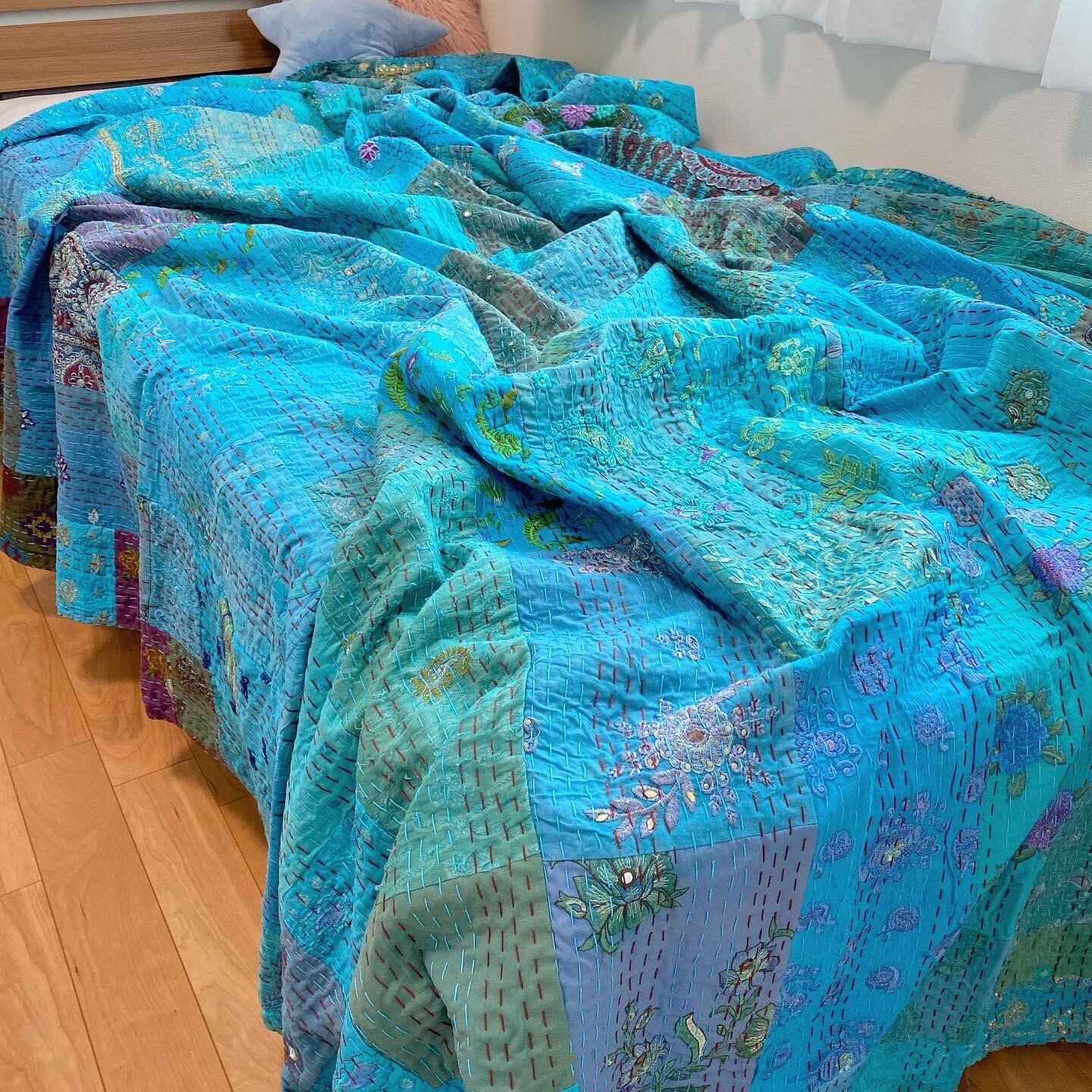繋ぎ合わせたパッチワークキルトはとても華やか。