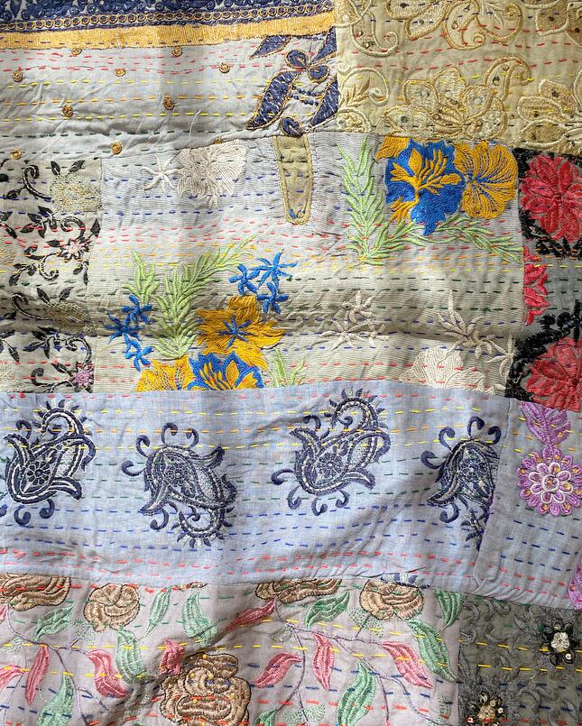 繋ぎ合わせたパッチワークキルトはとても華やか。