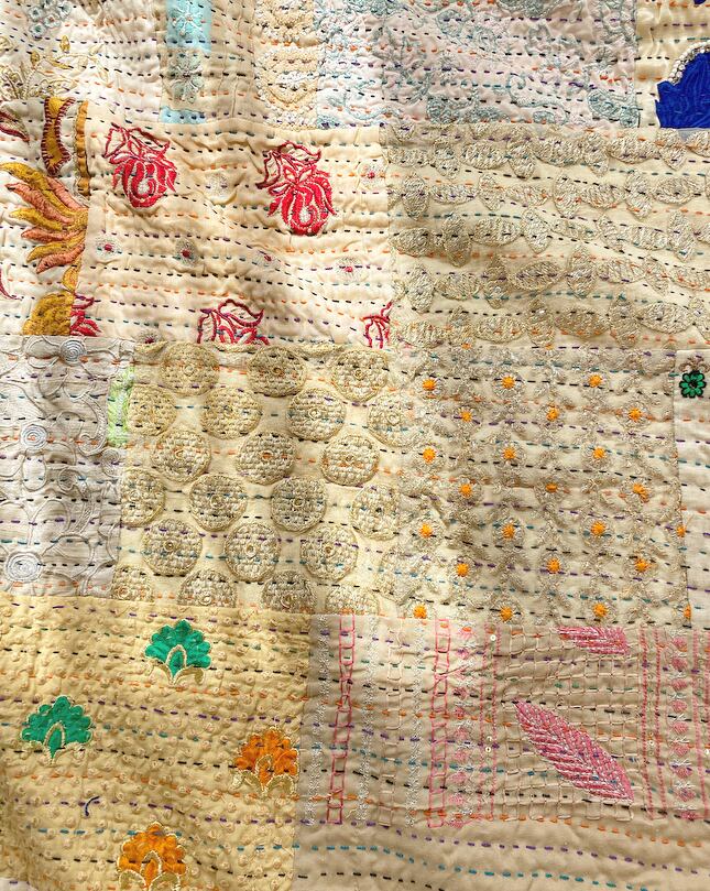 繋ぎ合わせたパッチワークキルトはとても華やか。