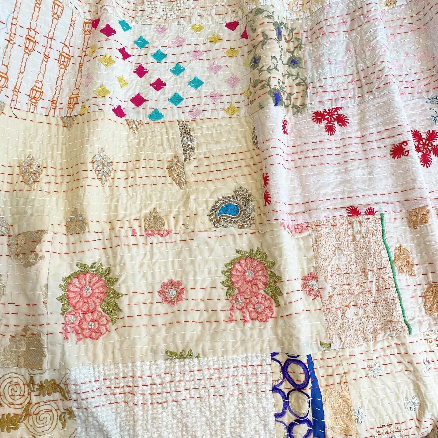 繋ぎ合わせたパッチワークキルトはとても華やか。