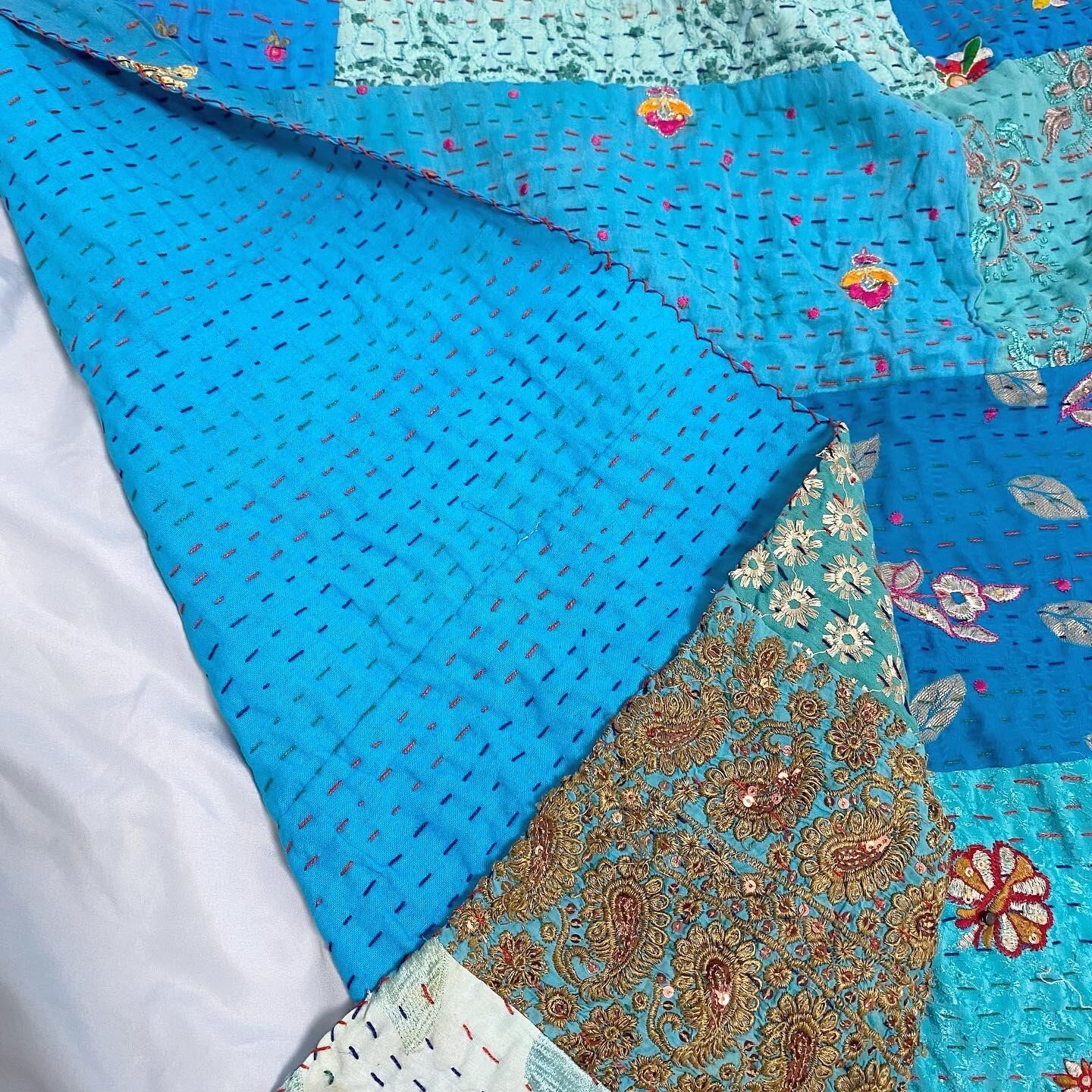 繋ぎ合わせたパッチワークキルトはとても華やか。