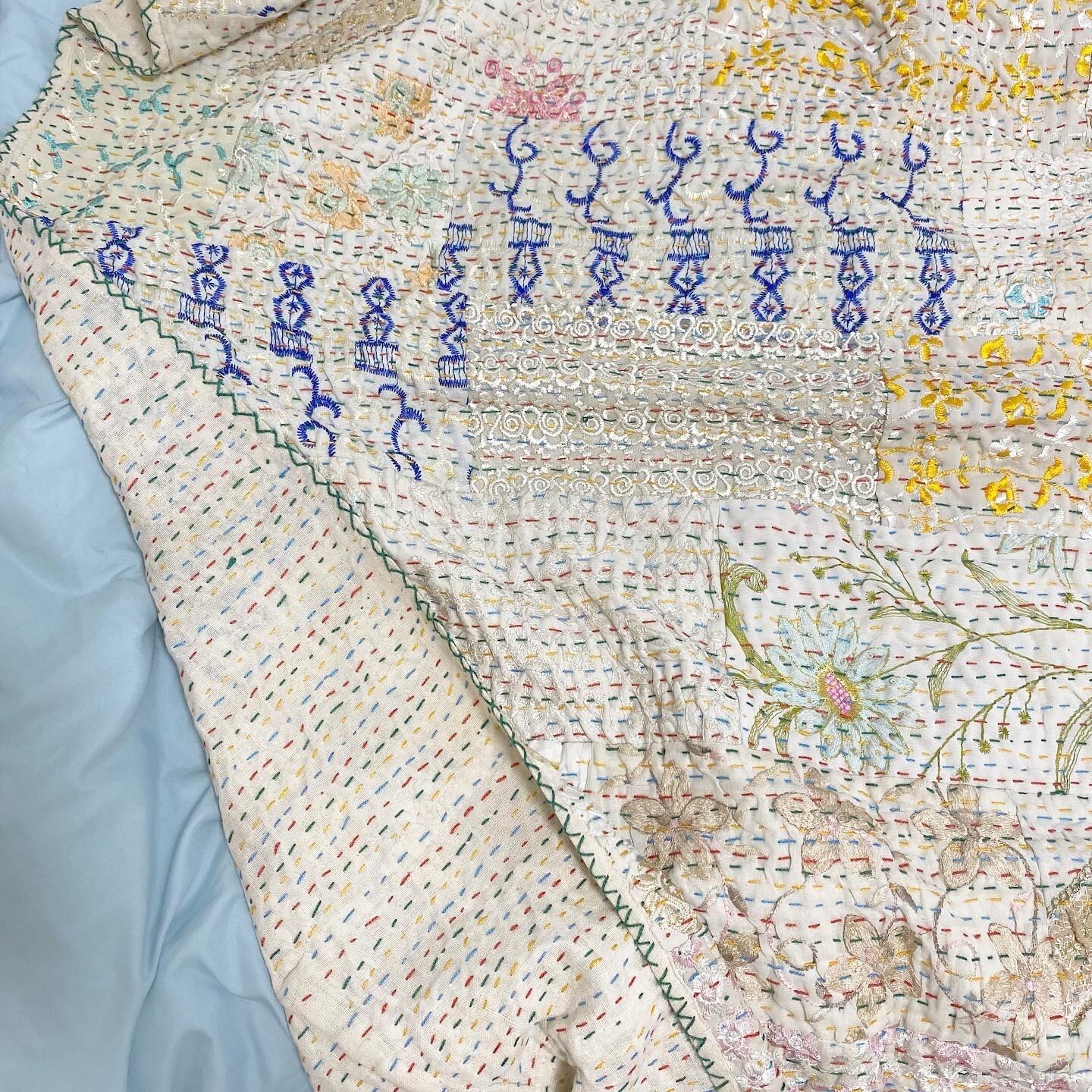 繋ぎ合わせたパッチワークキルトはとても華やか。