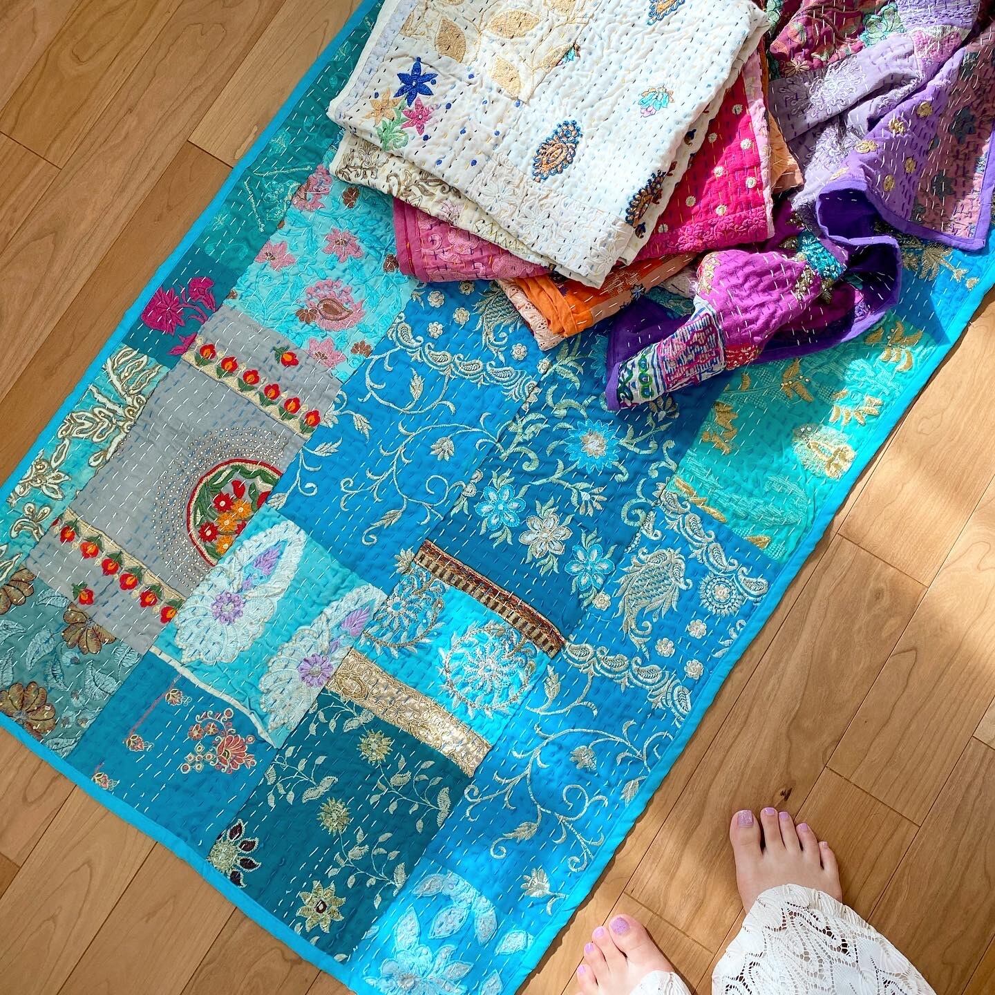 繋ぎ合わせたパッチワークキルトはとても華やか。