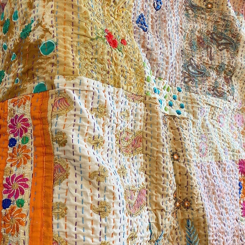 ※本品は、一部にビーズ、スパンコール、ミラーなど装飾を施したインドの古布を使用しており、多少のほつれ、ビーズ取れ、問題ない程度のシミ等が生じる場合がございます。 検品時に確認し、なるべく見落とさずに写真でお伝えできるよう努力しております。