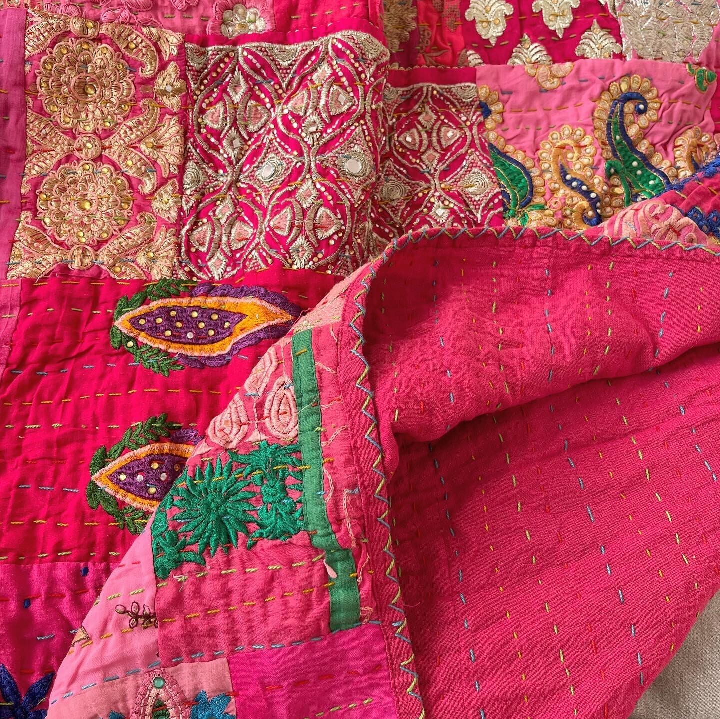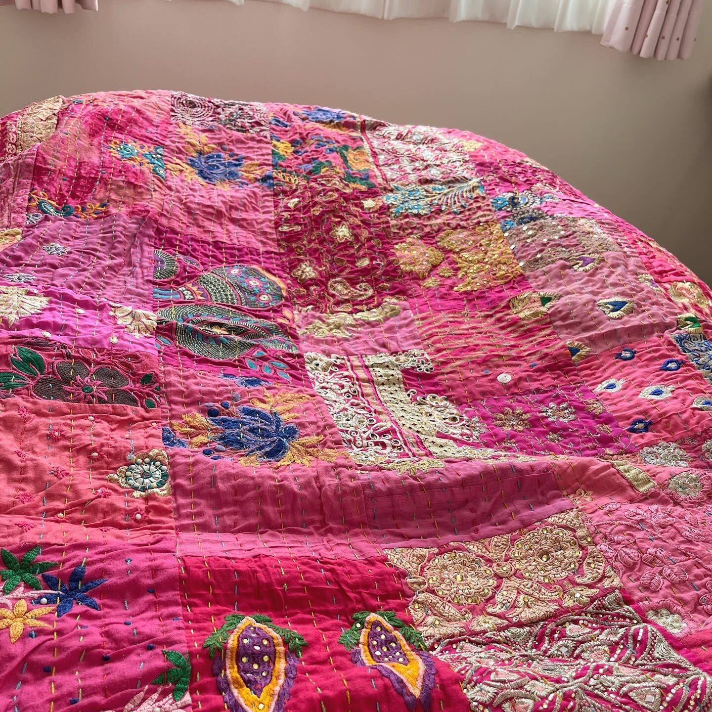 繋ぎ合わせたパッチワークキルトはとても華やか。