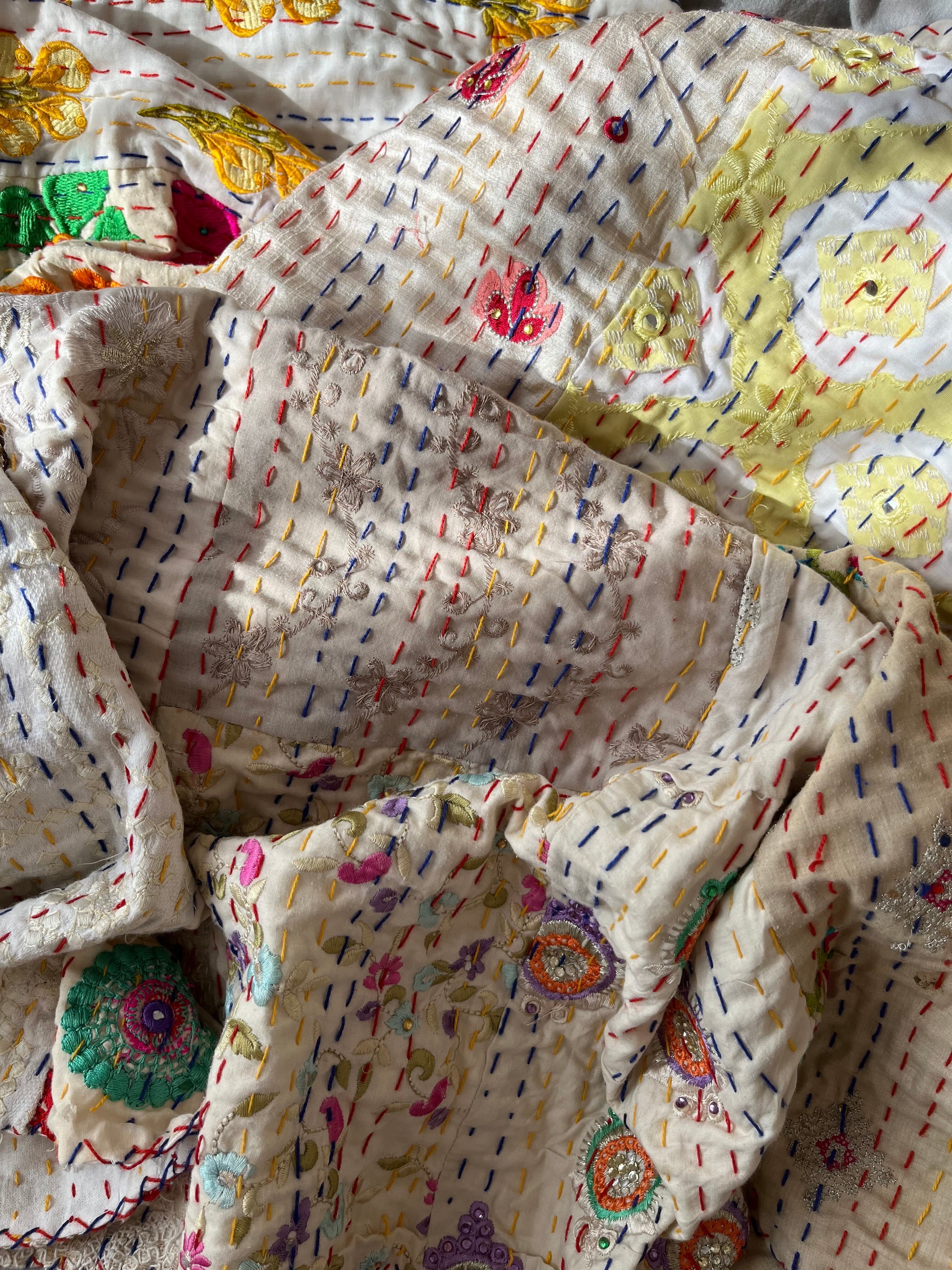 ※本品は、一部にビーズ、スパンコール、ミラーなど装飾を施したインドの古布を使用しており、多少のほつれ、ビーズ取れ、問題ない程度のシミ等が生じる場合がございます。 検品時に確認し、なるべく見落とさずに写真でお伝えできるよう努力しております。