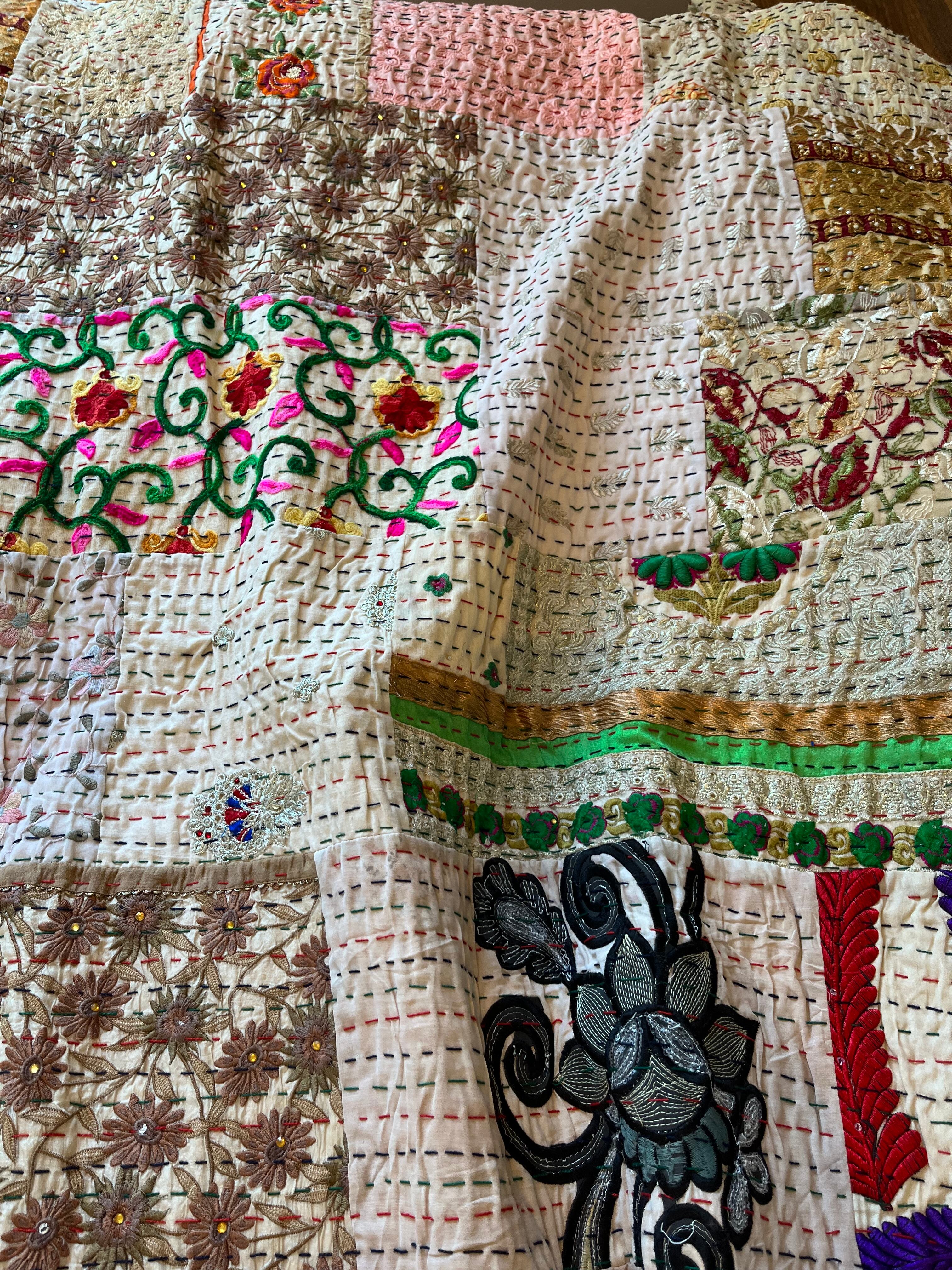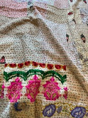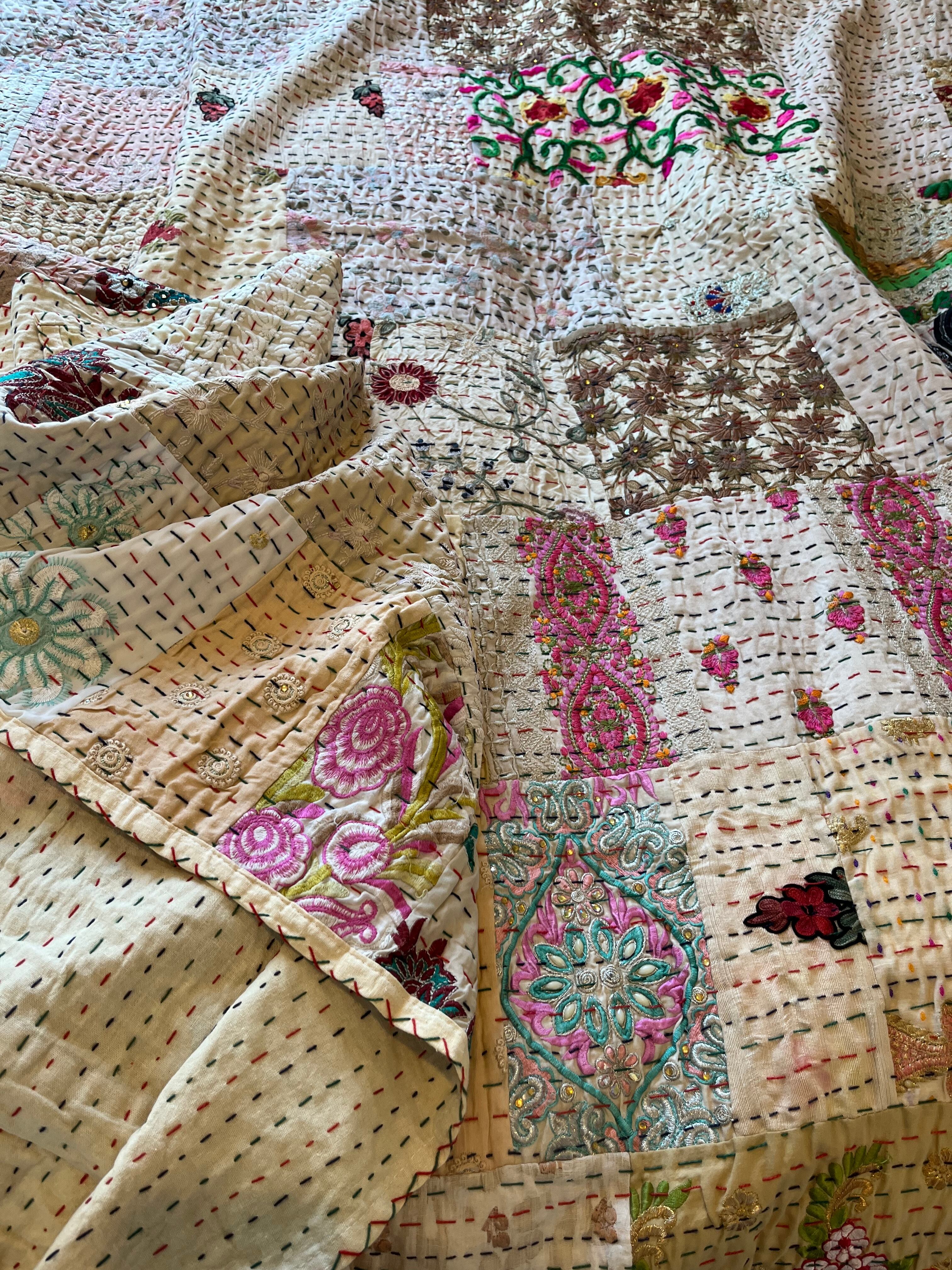 繋ぎ合わせたパッチワークキルトはとても華やか。