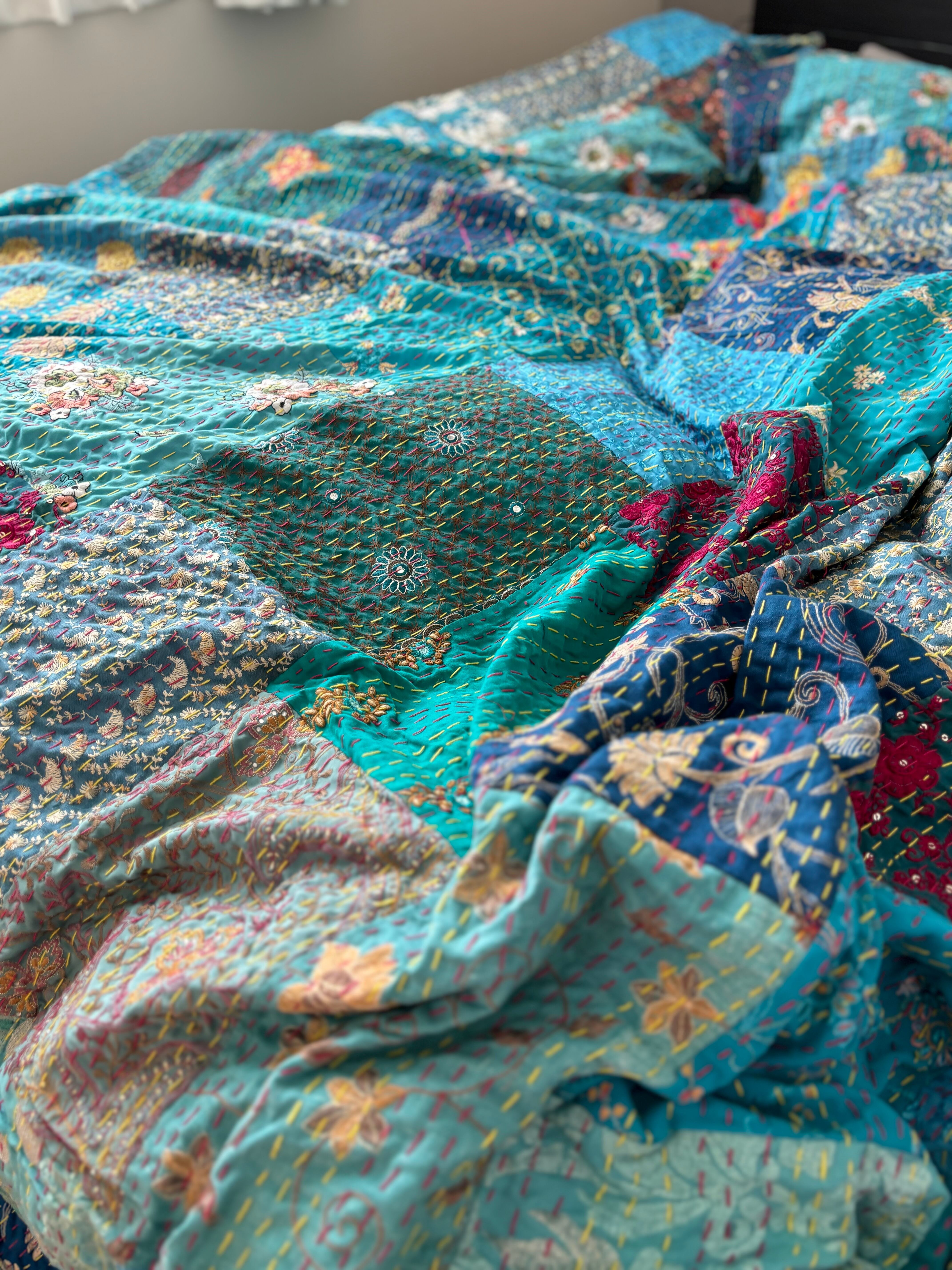 Lカンバディアキルト(ダブルサイズ)/ターコイズ