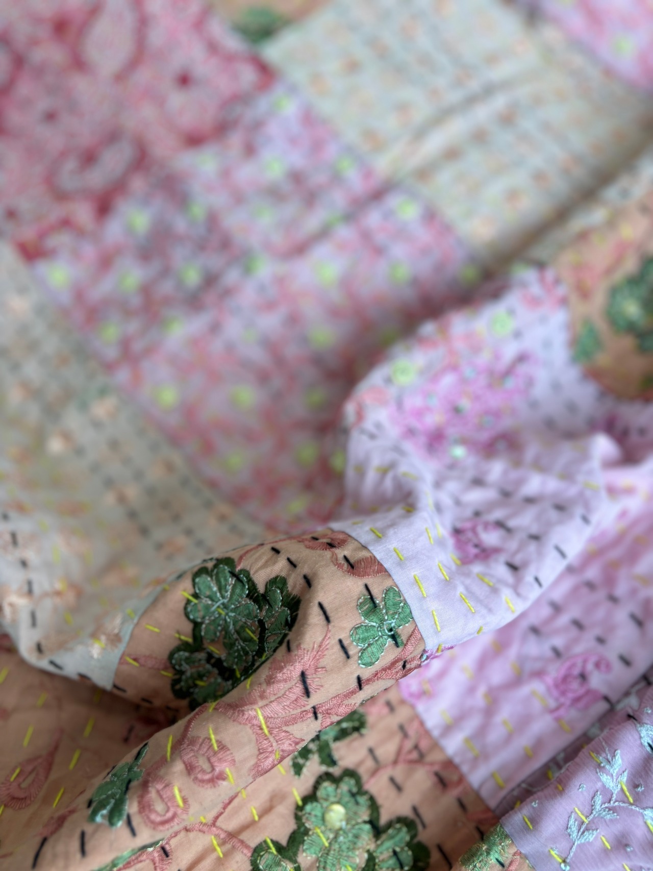 繋ぎ合わせたパッチワークキルトはとても華やか。