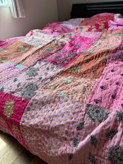 繋ぎ合わせたパッチワークキルトはとても華やか。