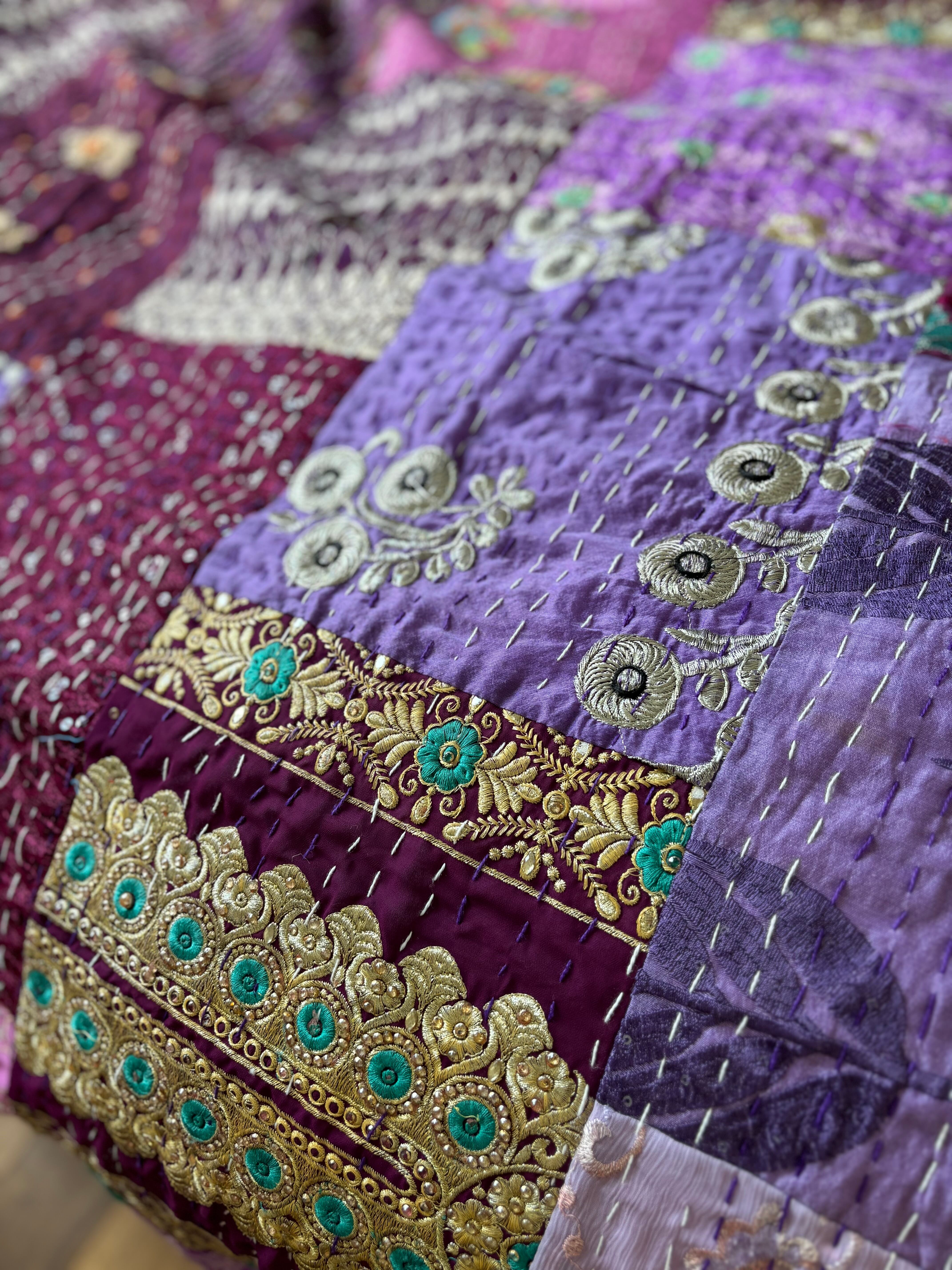 繋ぎ合わせたパッチワークキルトはとても華やか。