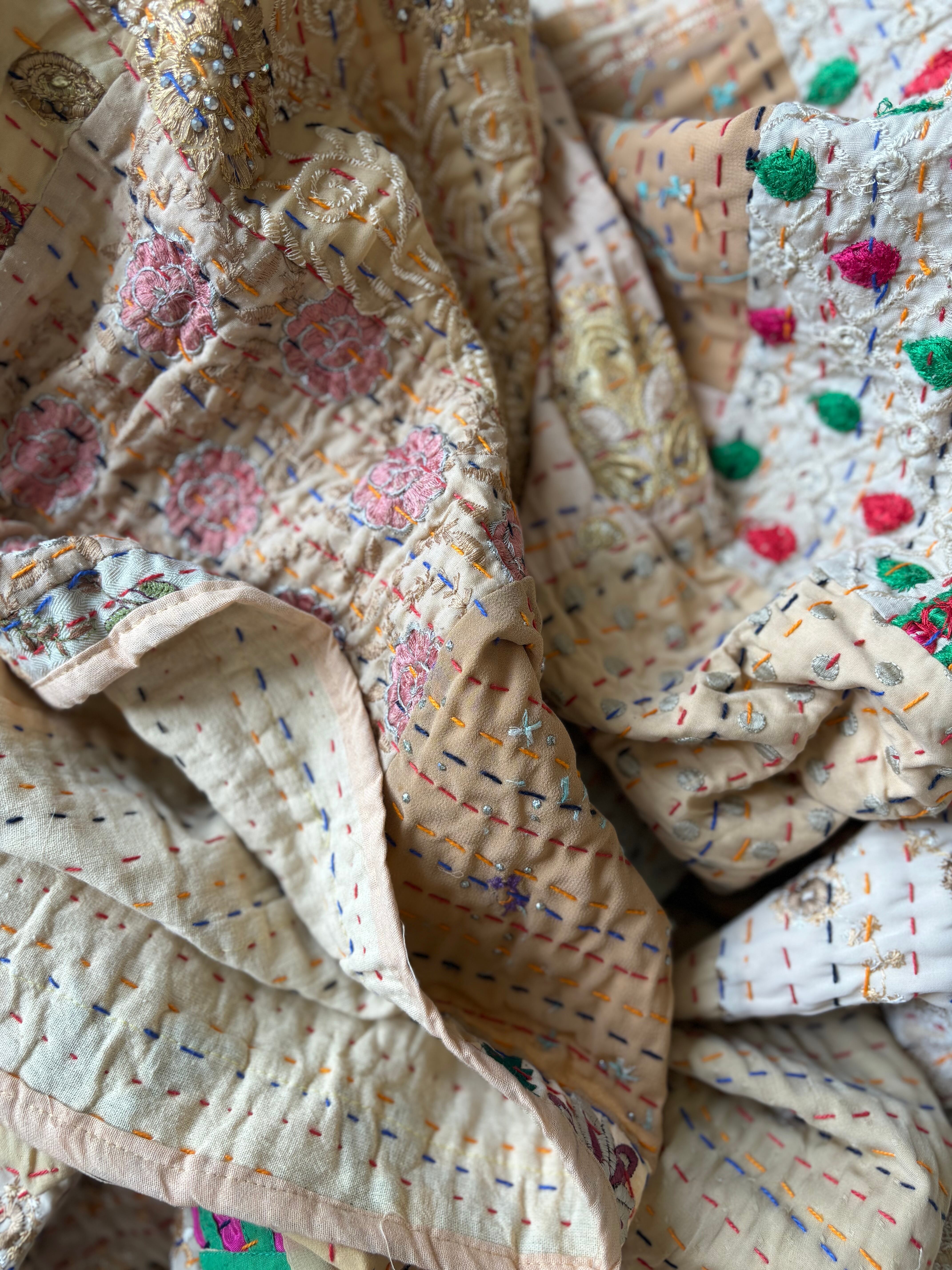 ※本品は、一部にビーズ、スパンコール、ミラーなど装飾を施したインドの古布を使用しており、多少のほつれ、ビーズ取れ、問題ない程度のシミ等が生じる場合がございます。 検品時に確認し、なるべく見落とさずに写真でお伝えできるよう努力しております。