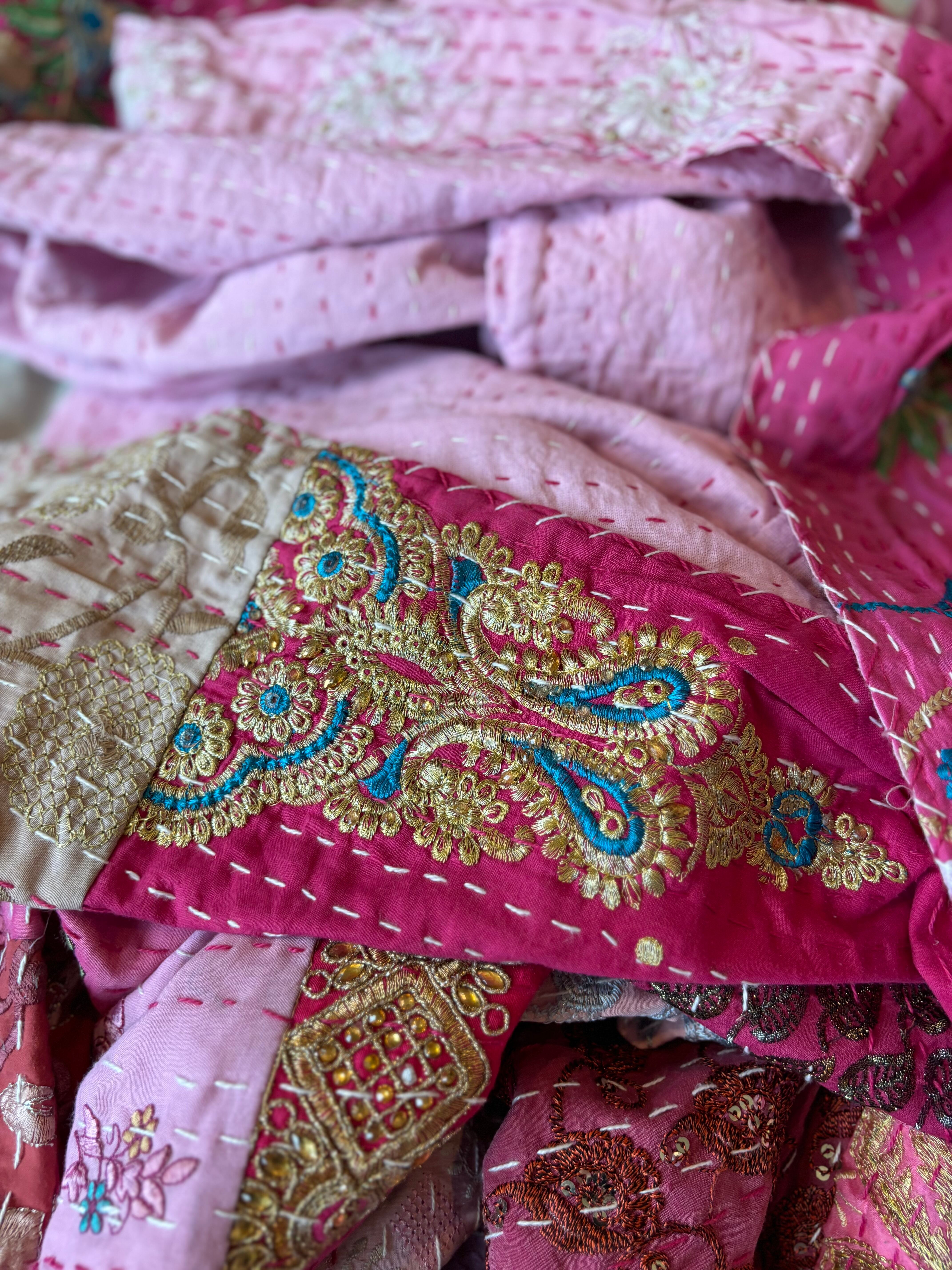 ※本品は、一部にビーズ、スパンコール、ミラーなど装飾を施したインドの古布を使用しており、多少のほつれ、ビーズ取れ、問題ない程度のシミ等が生じる場合がございます。 検品時に確認し、なるべく見落とさずに写真でお伝えできるよう努力しております。