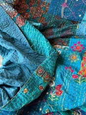 ※本品は、一部にビーズ、スパンコール、ミラーなど装飾を施したインドの古布を使用しており、多少のほつれ、ビーズ取れ、問題ない程度のシミ等が生じる場合がございます。 検品時に確認し、なるべく見落とさずに写真でお伝えできるよう努力しております。