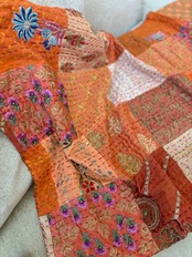 ※本品は、一部にビーズ、スパンコール、ミラーなど装飾を施したインドの古布を使用しており、多少のほつれ、ビーズ取れ、問題ない程度のシミ等が生じる場合がございます。 検品時に確認し、なるべく見落とさずに写真でお伝えできるよう努力しております。