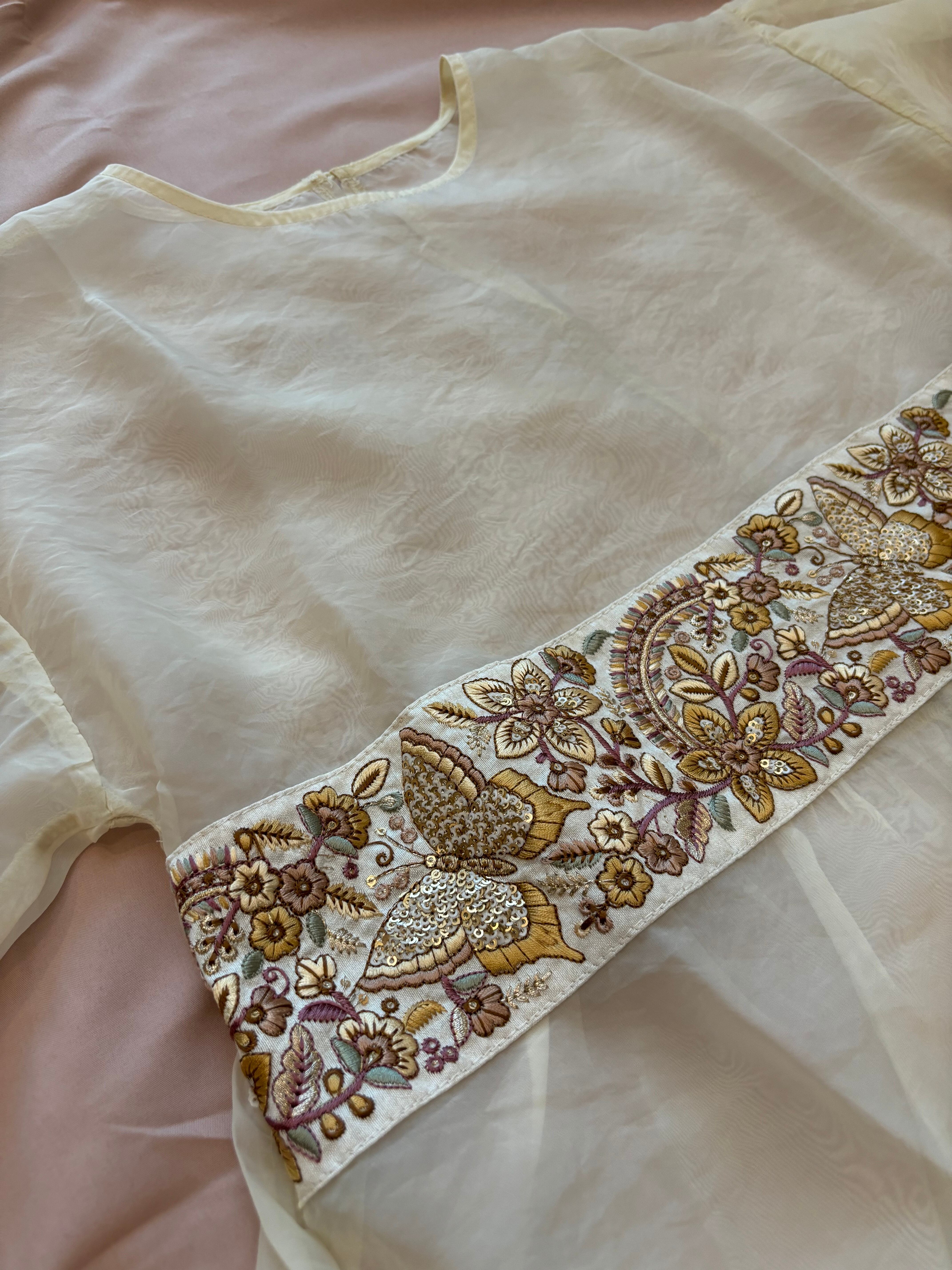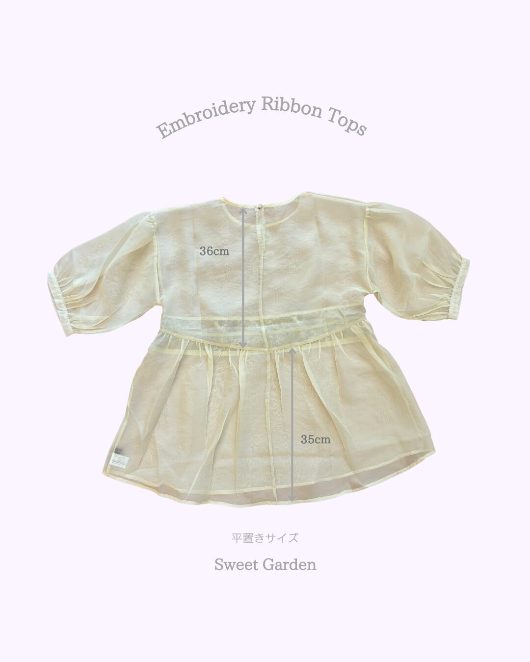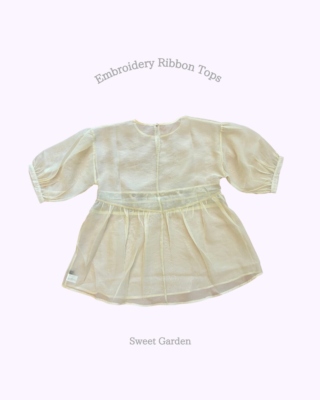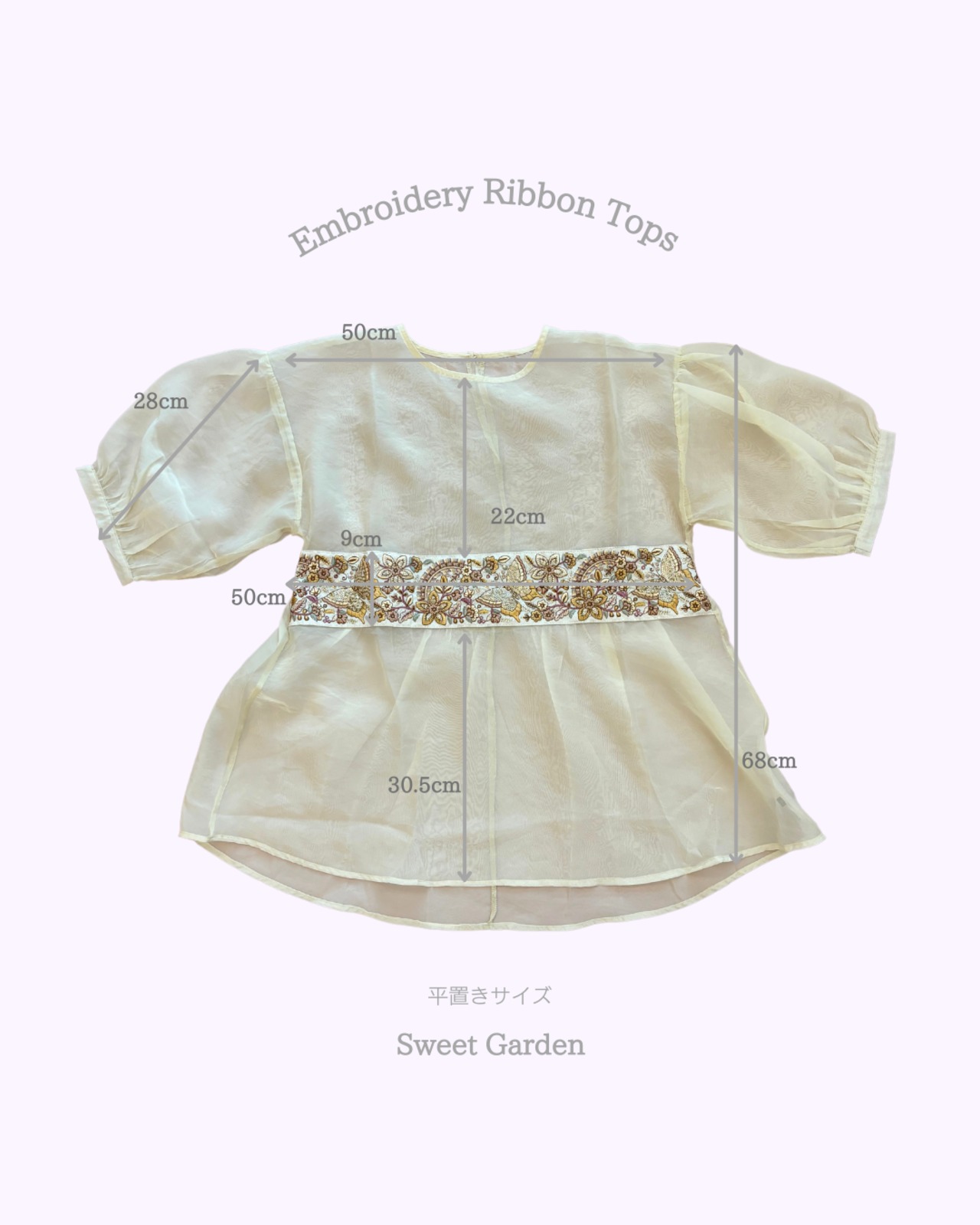 インド刺繍リボンシアーペプラムトップス/ベージュ