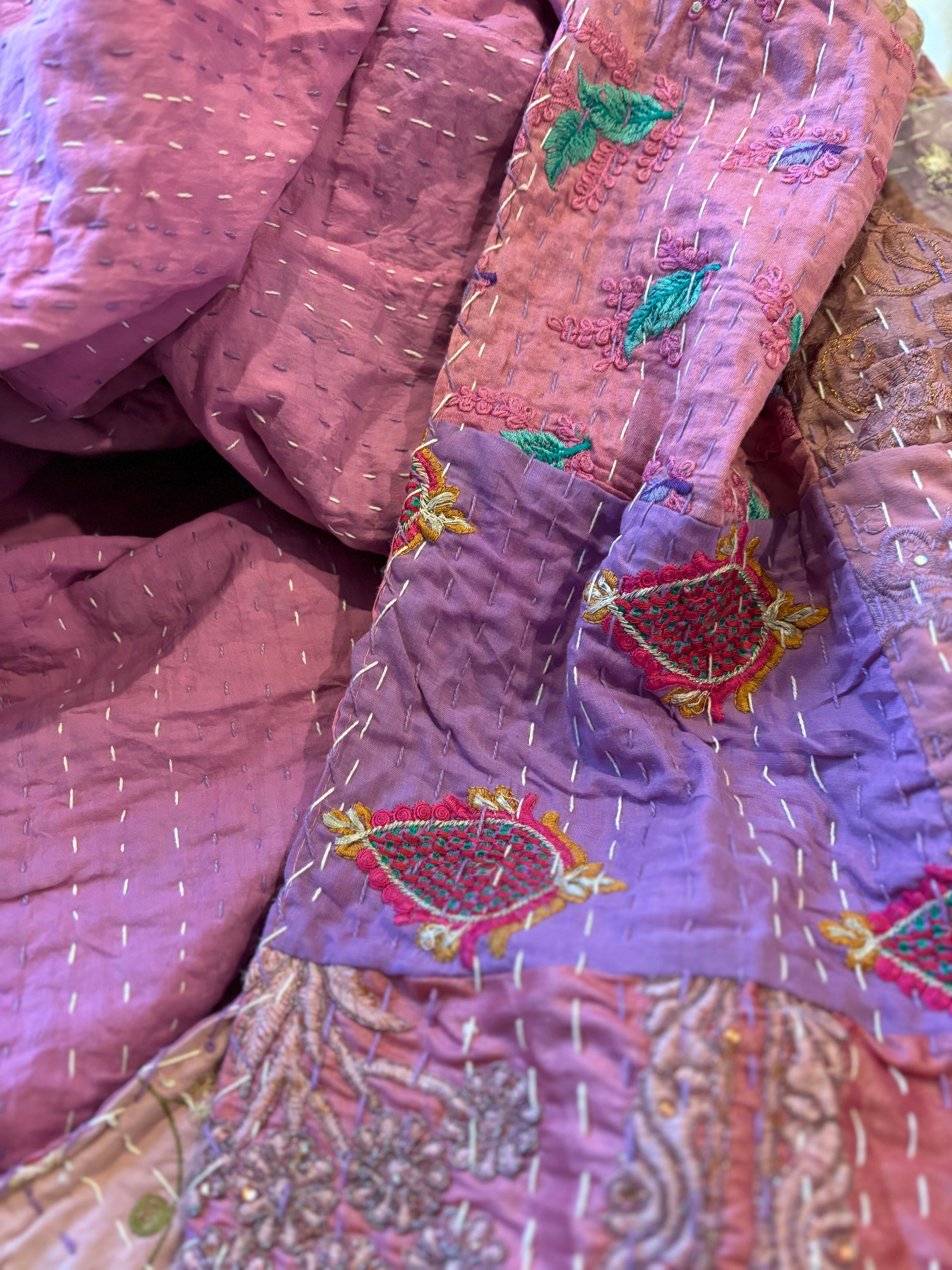 繋ぎ合わせたパッチワークキルトはとても華やか。