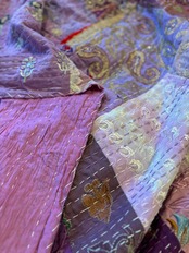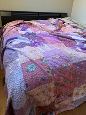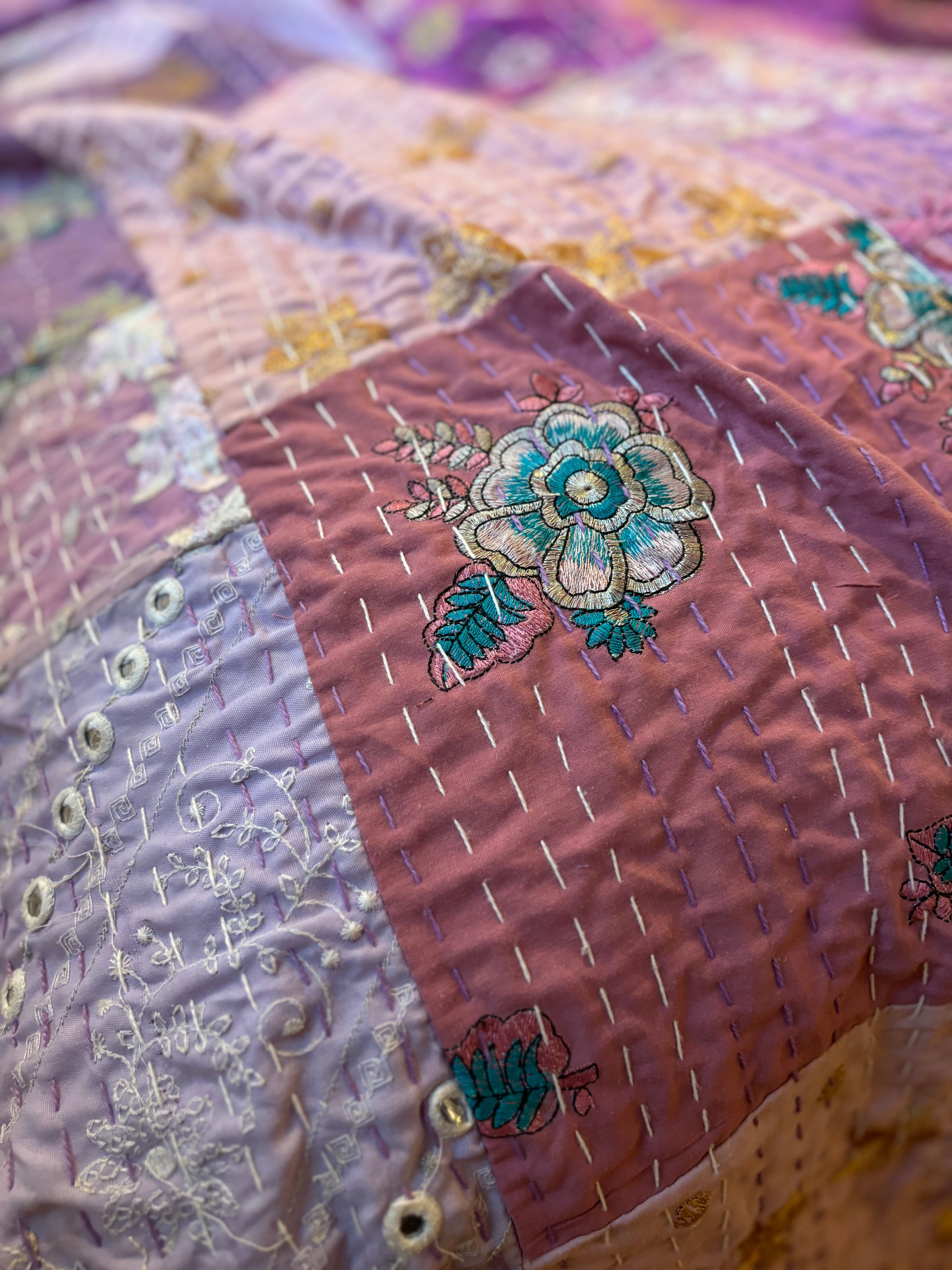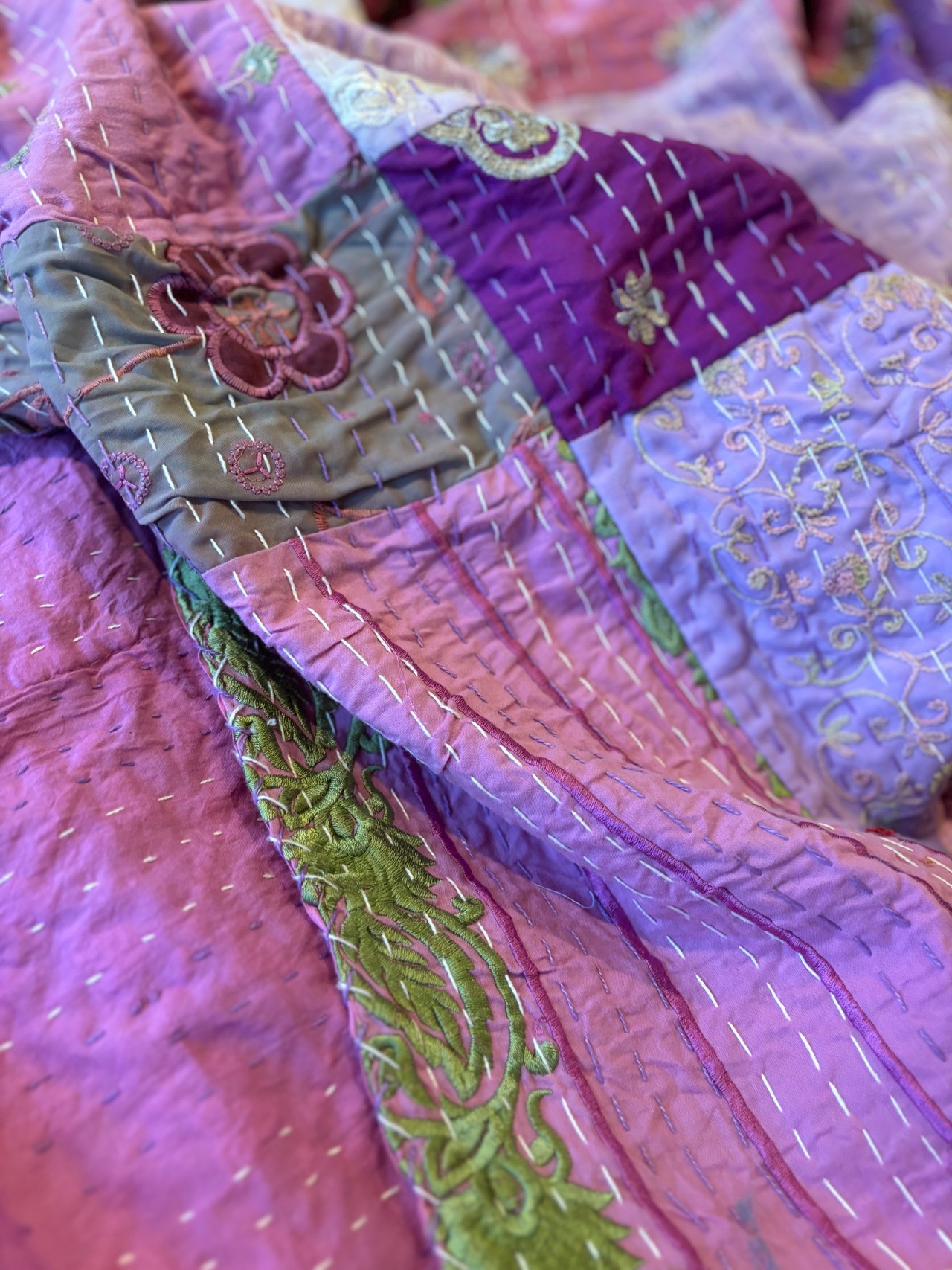繋ぎ合わせたパッチワークキルトはとても華やか。