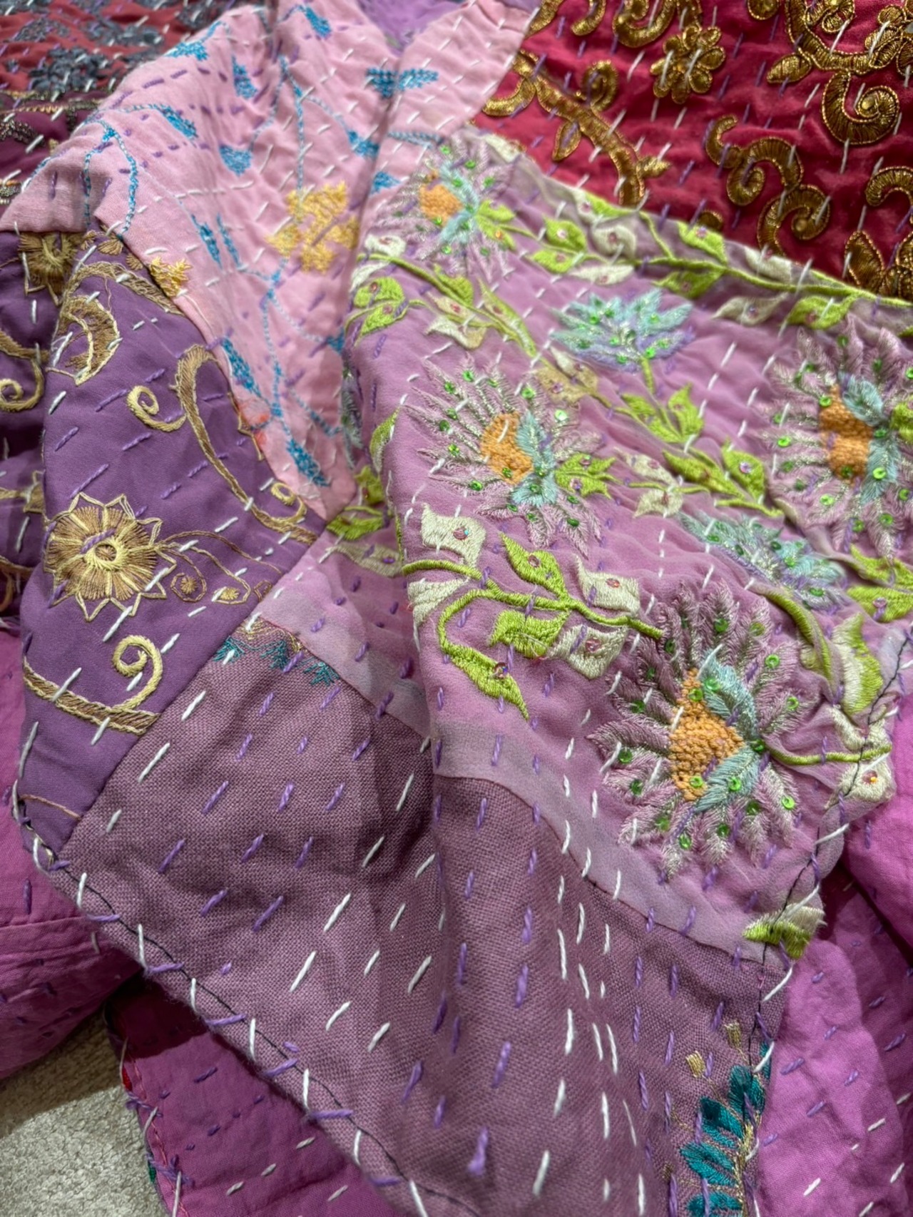 繋ぎ合わせたパッチワークキルトはとても華やか。