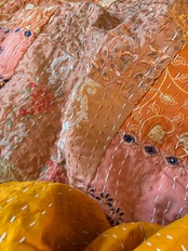 ※本品は、一部にビーズ、スパンコール、ミラーなど装飾を施したインドの古布を使用しており、多少のほつれ、ビーズ取れ、問題ない程度のシミ等が生じる場合がございます。 検品時に確認し、なるべく見落とさずに写真でお伝えできるよう努力しております。