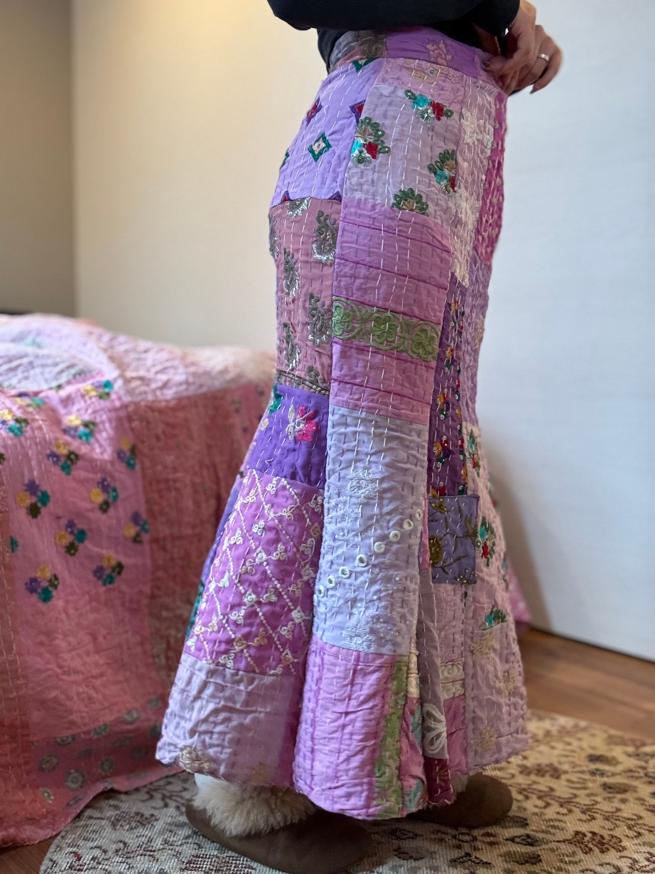 繋ぎ合わせたパッチワークキルトはとても華やか。