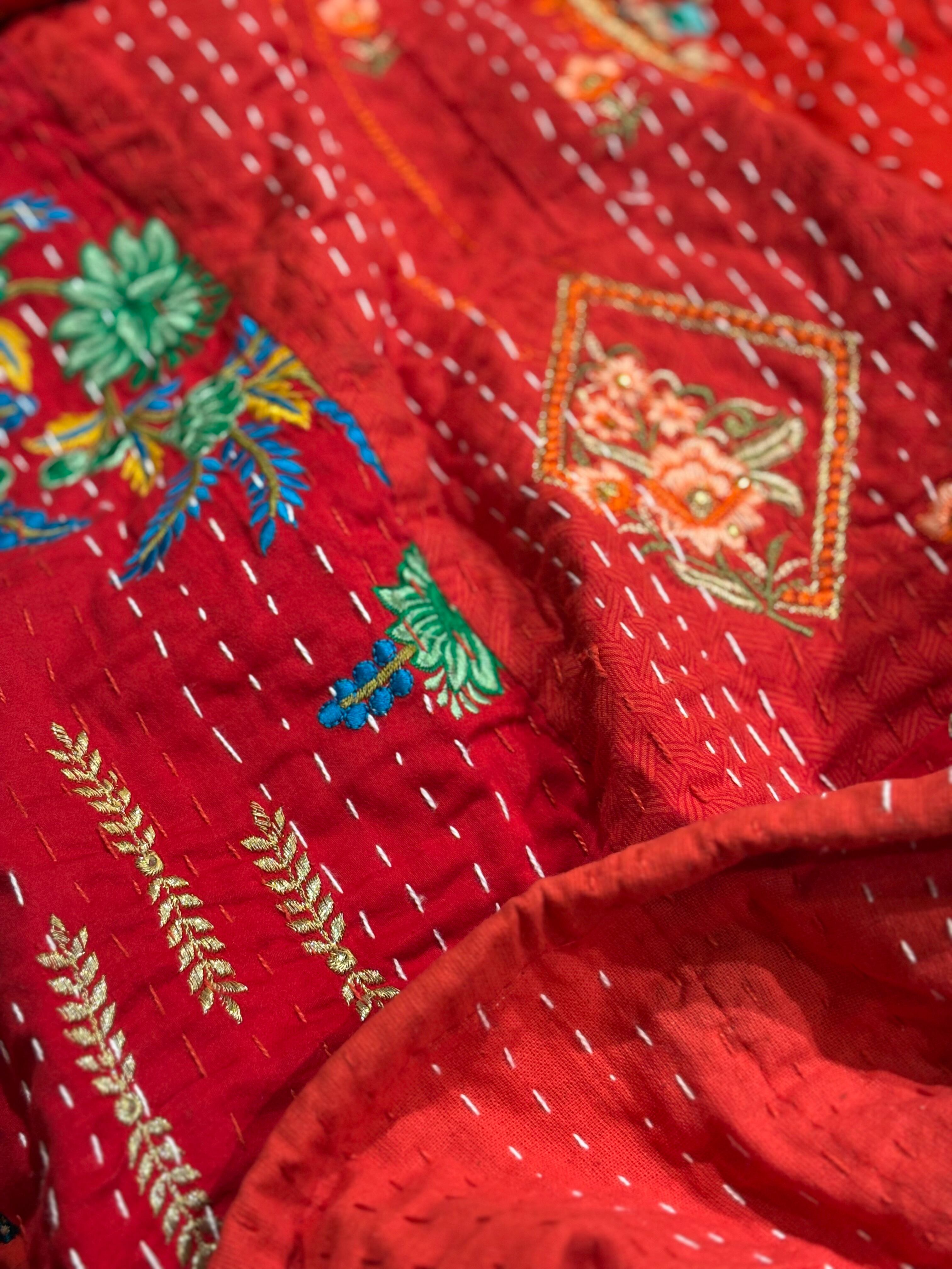 繋ぎ合わせたパッチワークキルトはとても華やか。